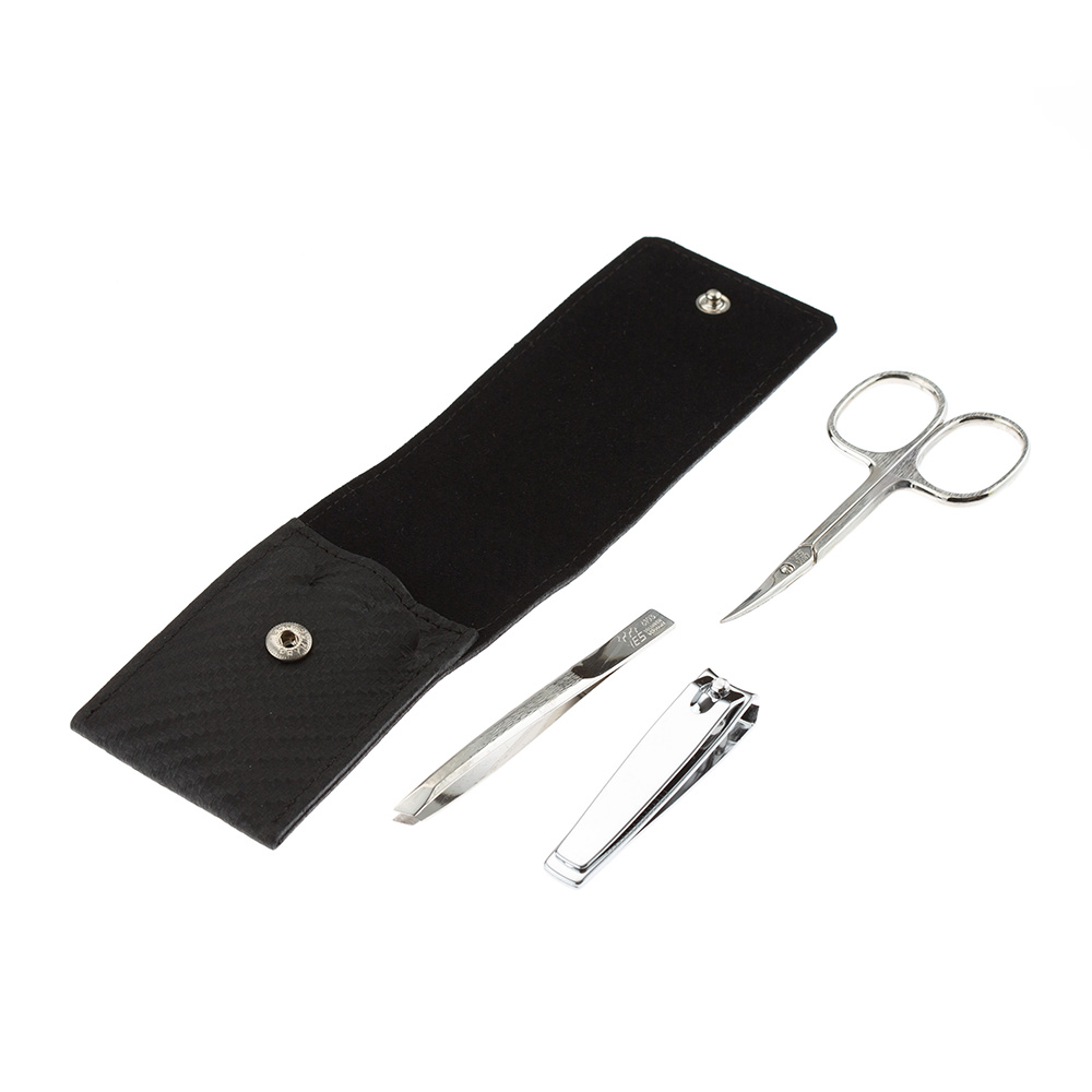 Маникюрный набор YES, 3 пр. Футляр: натуральная кожа, цвет черный, 9493