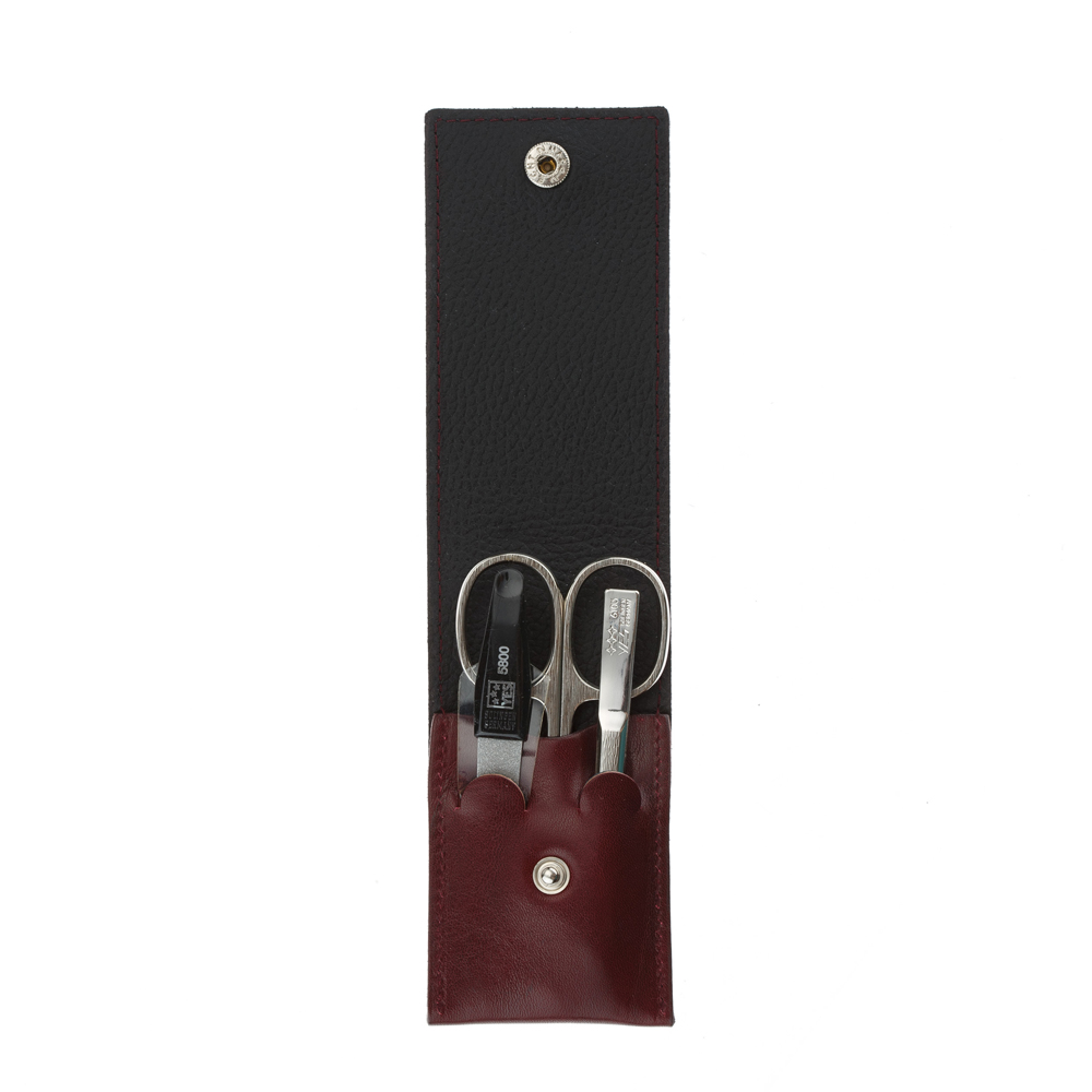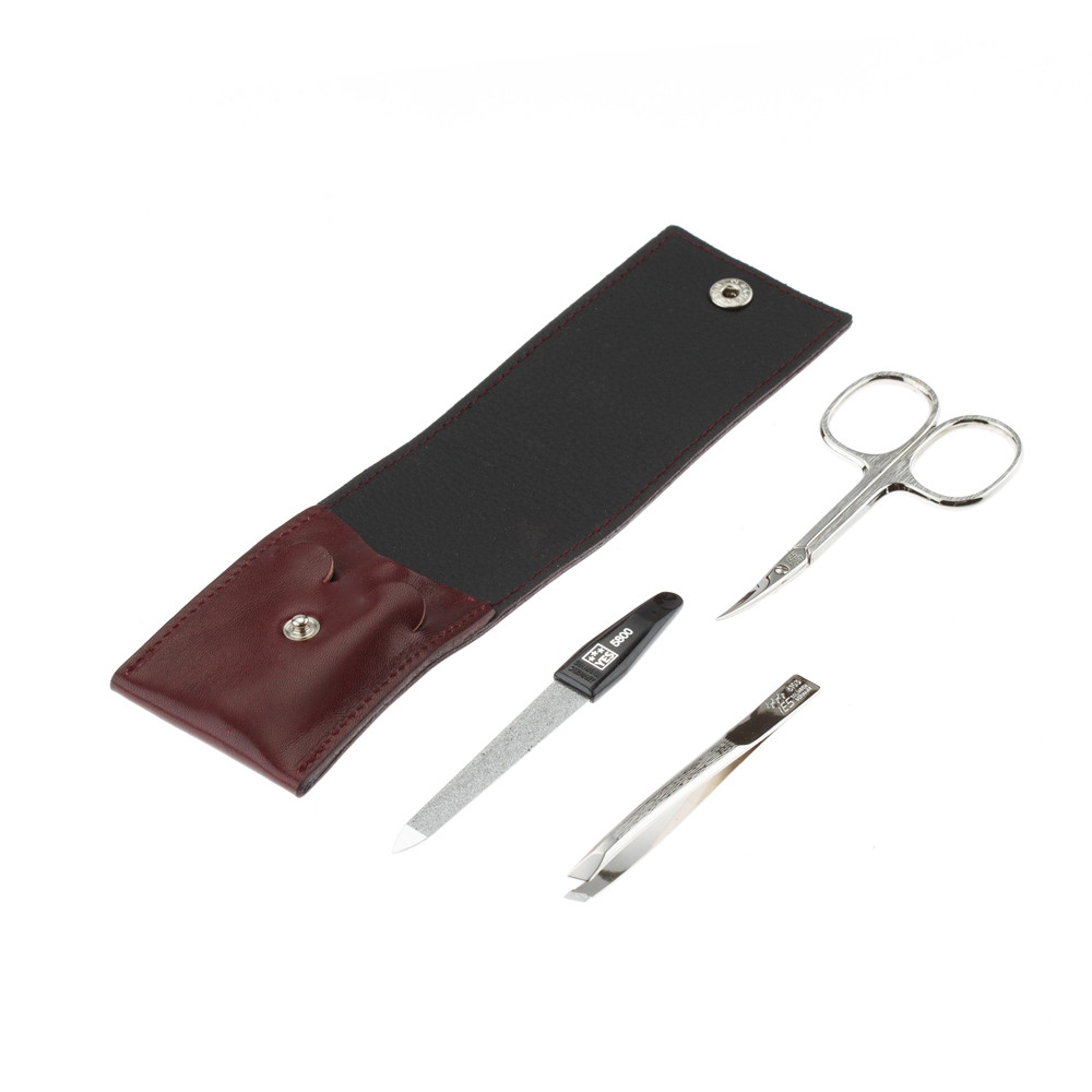 Маникюрный набор YES, 3 пр. Футляр: натуральная кожа, цвет бордово-красный, 9144