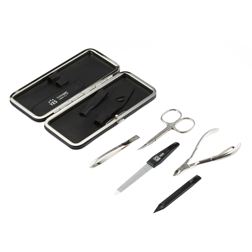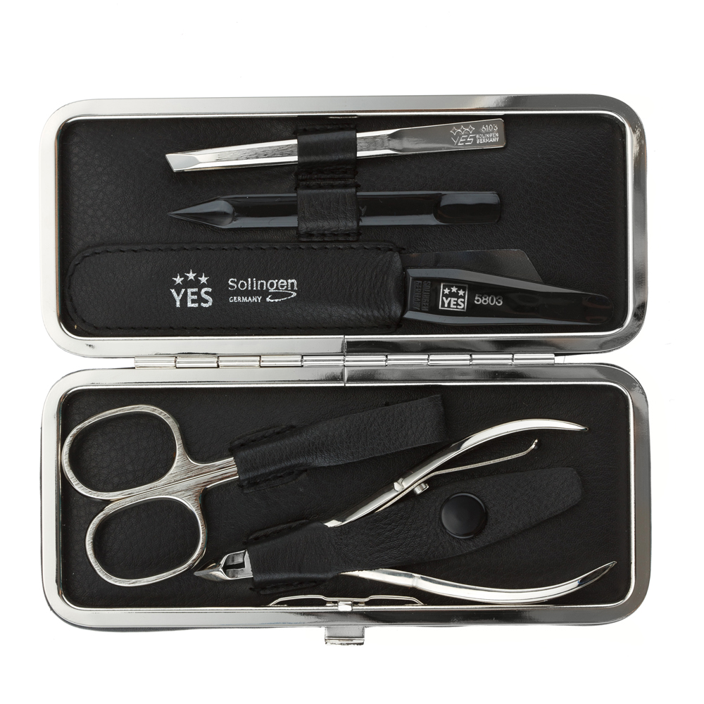 Маникюрный набор YES, 5 пр. Футляр: натуральная кожа, цвет черный, 9021