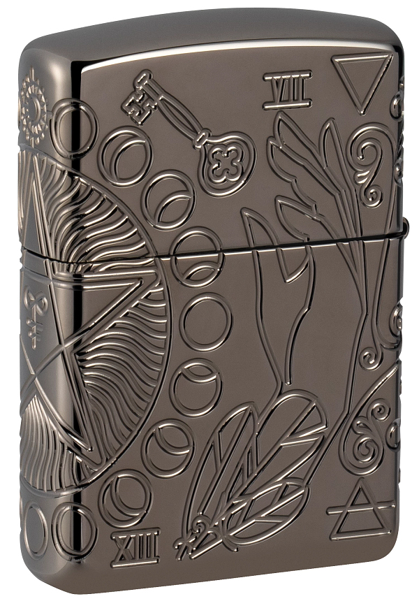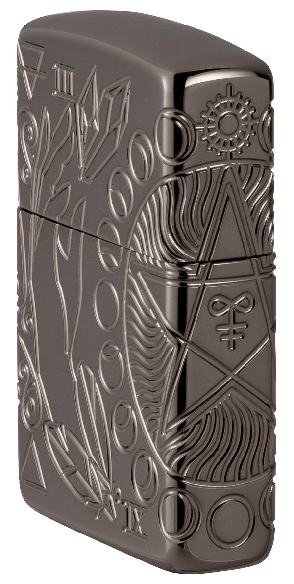 Зажигалка ZIPPO Armor® Wicca Design с покрытием Black Ice®, латунь/сталь, чёрная, 38x13x57 мм, 49689