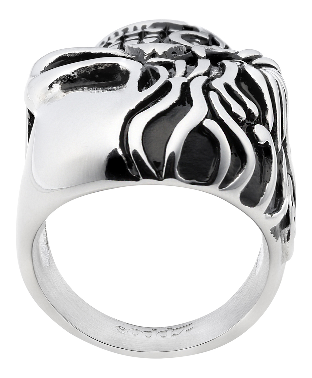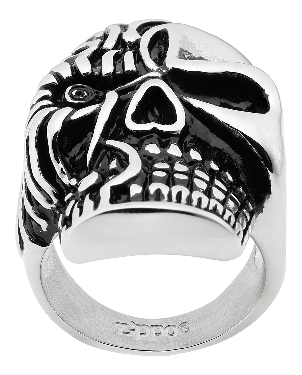 Кольцо ZIPPO, серебристое, в форме черепа, нержавеющая сталь, 2,3x3,3x0,5 см, диаметр 19,7 мм, 2006285