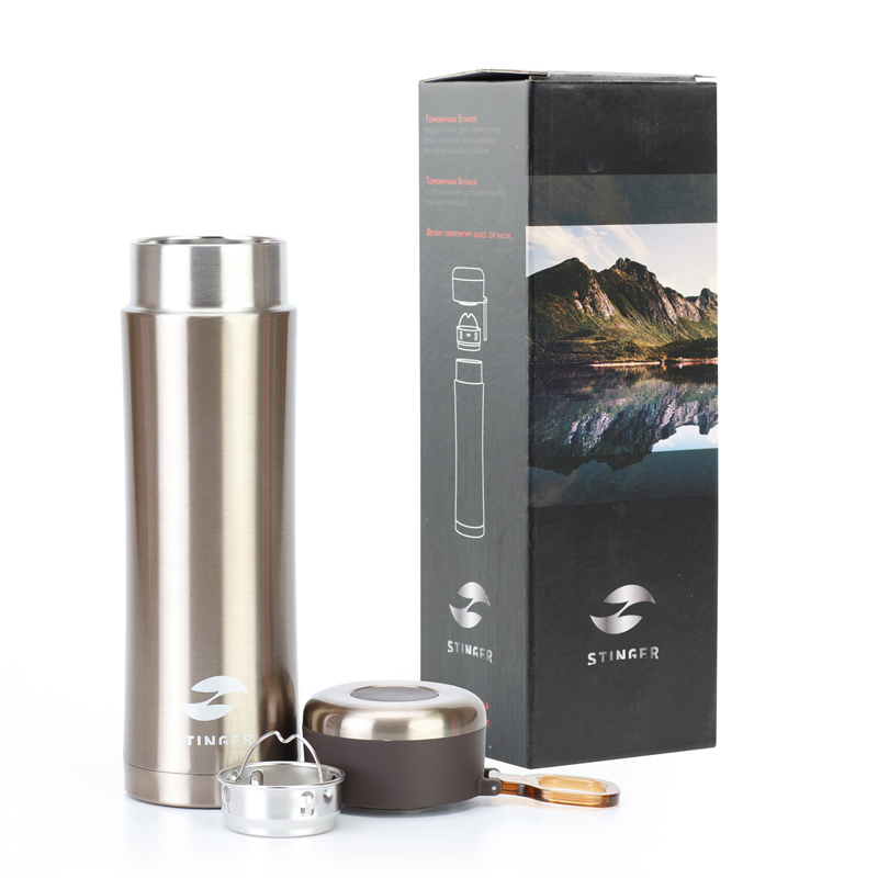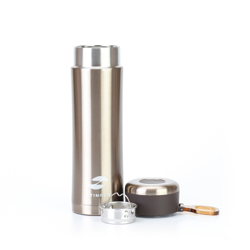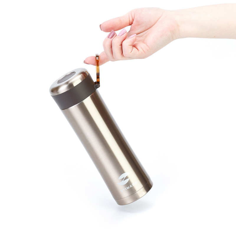 Термокружка Stinger, 0,42 л, сталь/пластик, золотой глянцевый, 7,5 х 6,9 х 22,2 см, HW-420-32-467
