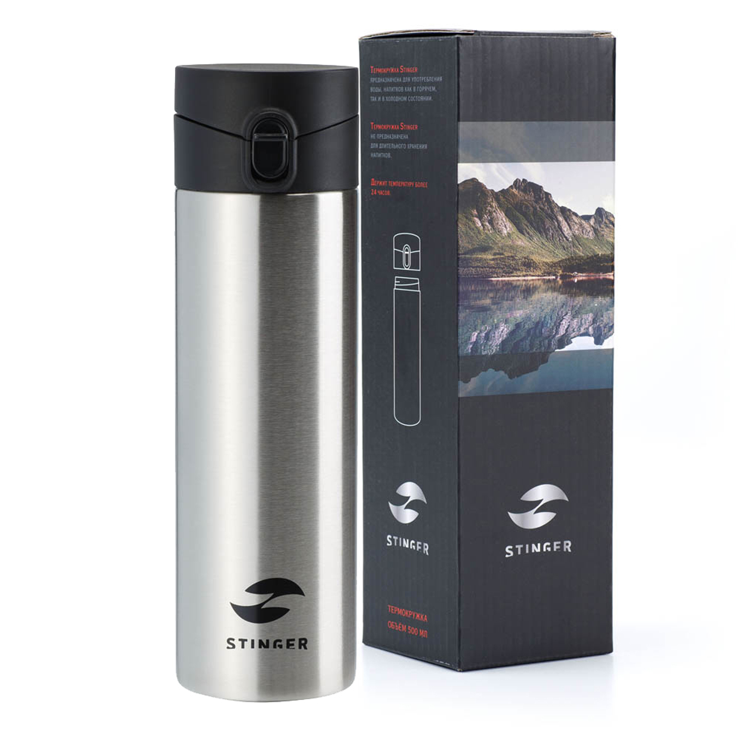 Термокружка Stinger, 0,5 л, сталь/пластик, серебристый, 6,7 x 6,7 x 22,4 см, HD-500-35