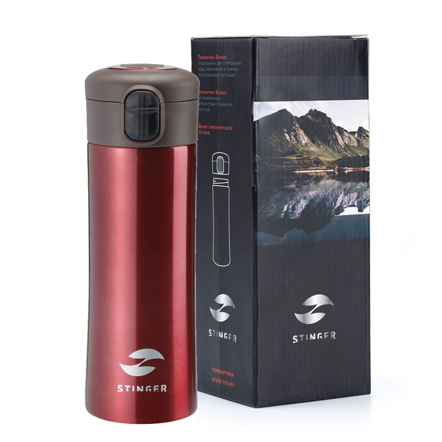 Термокружка Stinger, 0,35 л, сталь/пластик, красный глянцевый, 8,4 x 7 x 21,2 см, HW-350-34-7620