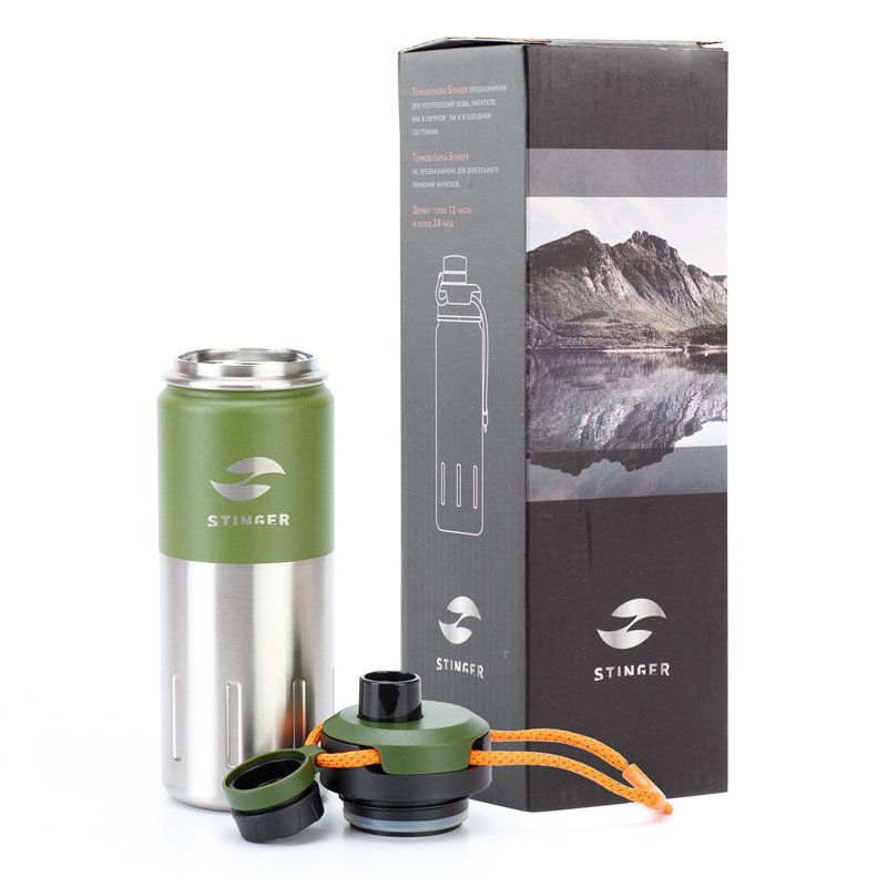 Термобутылка Stinger, 0,5 л, сталь/пластик, "зеленый мох", 7,5 х 23,1 см, HD-500-46MG