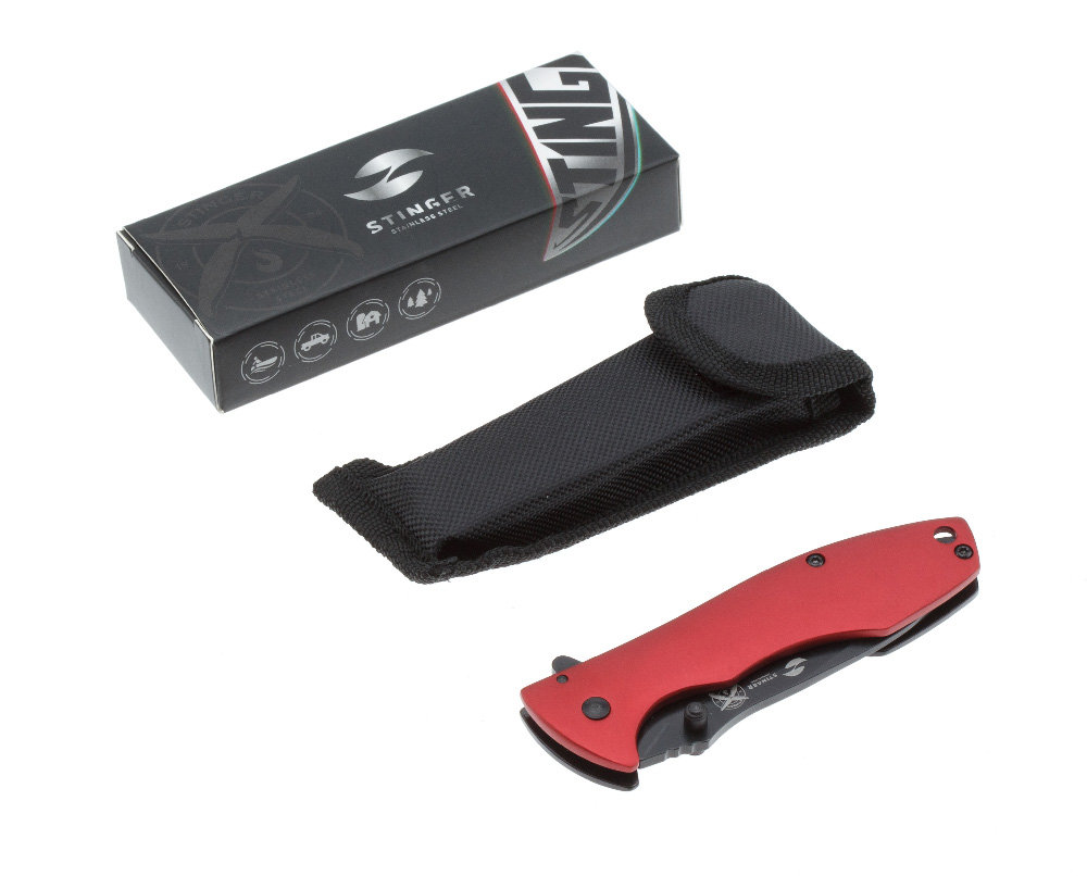 Нож складной Stinger, 80 мм, (чёрный), материал рукояти: сталь/алюминий (чёрно-красный), FK-721RD, Красный