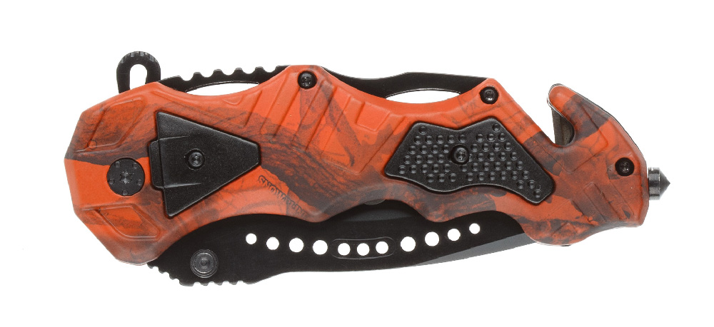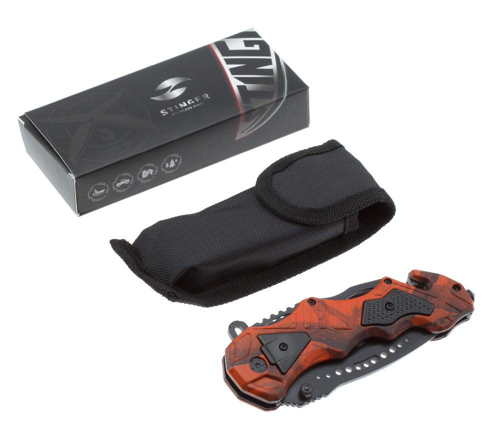 Нож складной Stinger, 100 мм, (чёрный), материал рукояти: алюминий (оранжевый камуфляж), FK-018X