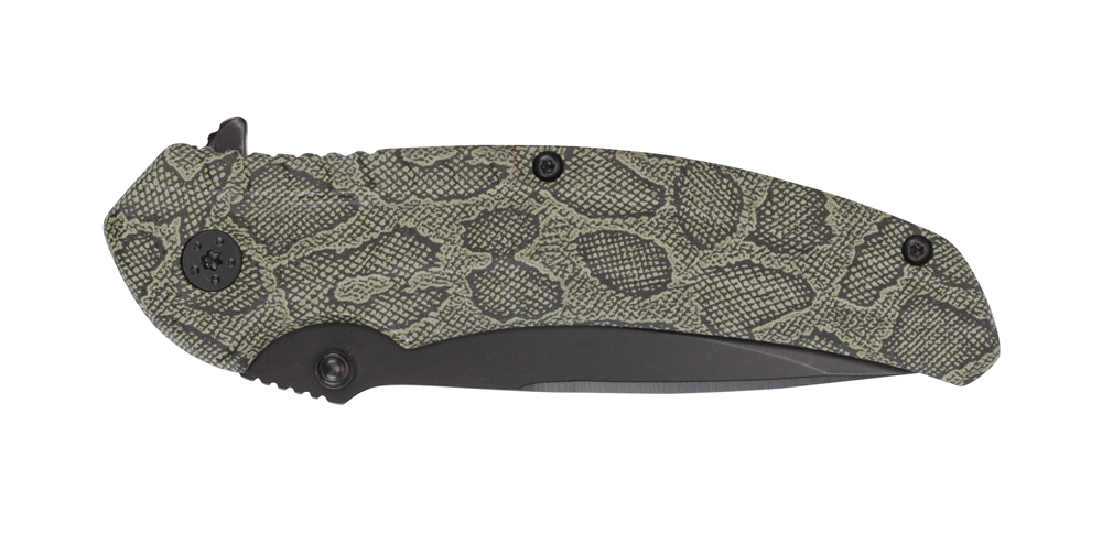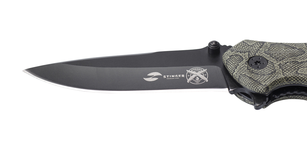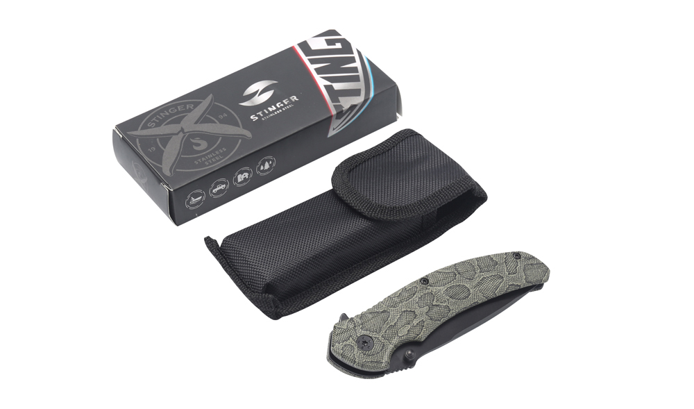 Нож складной Stinger, 84 мм, (чёрный), материал рукояти: алюминий (зелёный камуфляж), FK-019SAK-CA