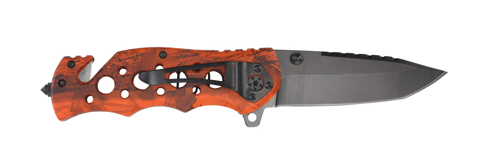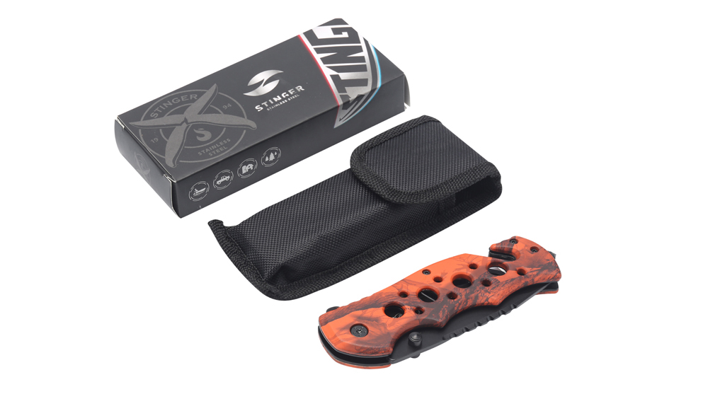 Нож складной Stinger, 86 мм, (чёрный), материал рукояти: алюминий (оранжевый камуфляж), FK-020OR