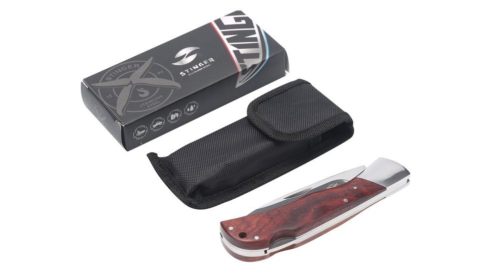 Нож складной Stinger, 104 мм, (серебристый), материал рукояти: сталь/дерево (серебристо-коричневый), FK-9902