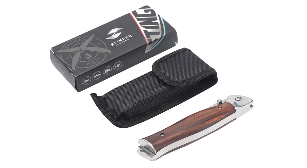 Нож складной Stinger, 105 мм, (серебристый), материал рукояти: сталь/дерево (серебристо-коричневый), FK-9905