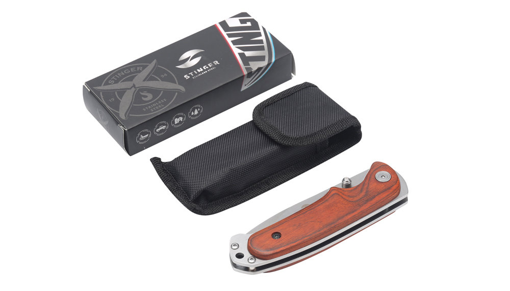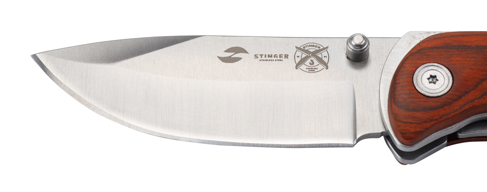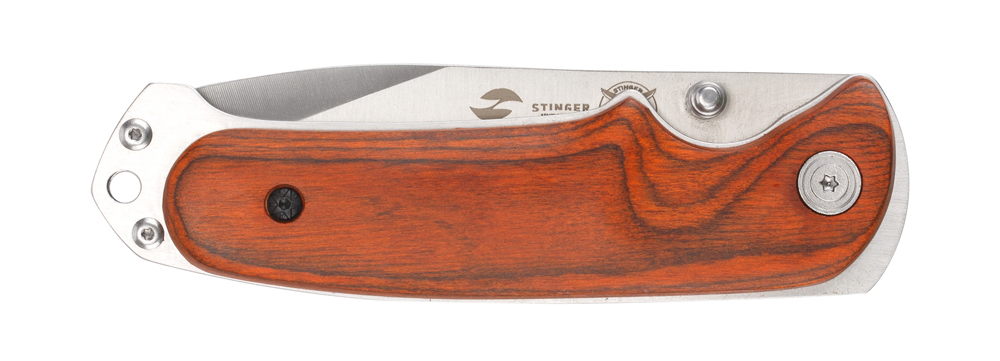 Нож складной Stinger, 91 мм, (серебристый), материал рукояти: сталь/дерево (серебристо-коричневый), FK-8236