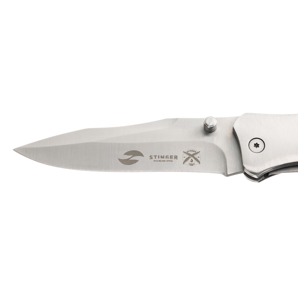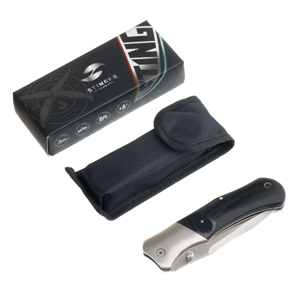 Нож складной Stinger, 100 мм, (серебристый), материал рукояти: сталь/дерево (серебристо-чёрный), YD-5303L