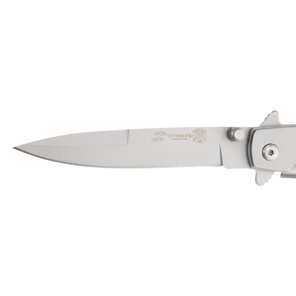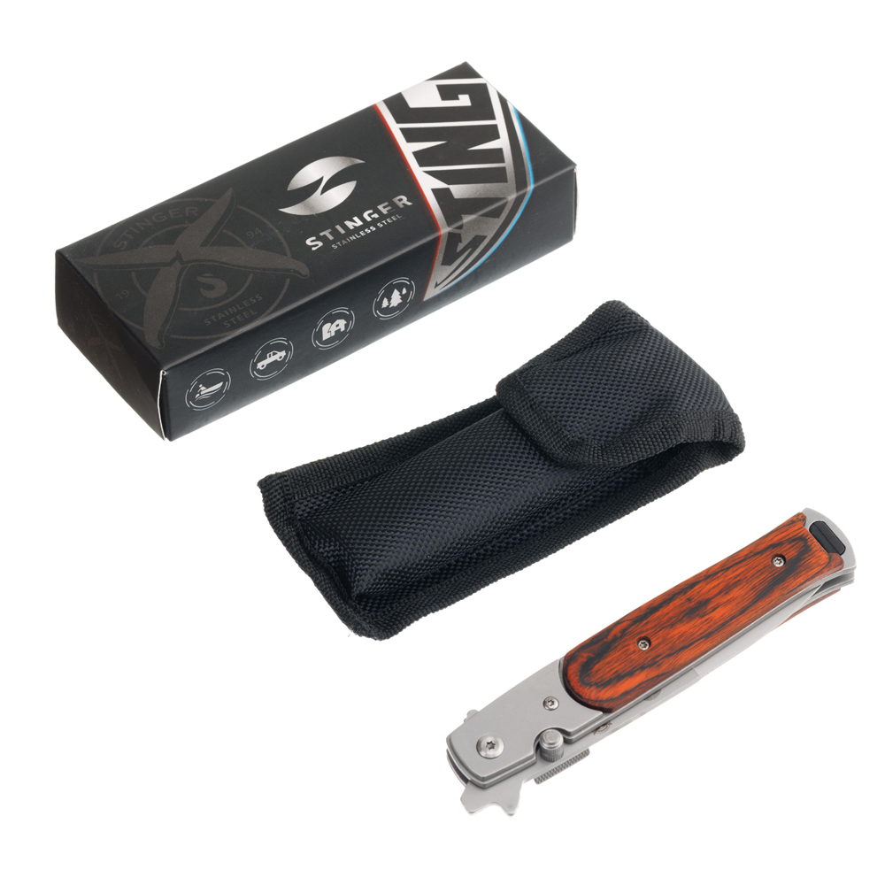 Нож складной Stinger, 100 мм, (серебристый), материал рукояти:сталь/дерево (серебристо-коричневый), YD-9140L