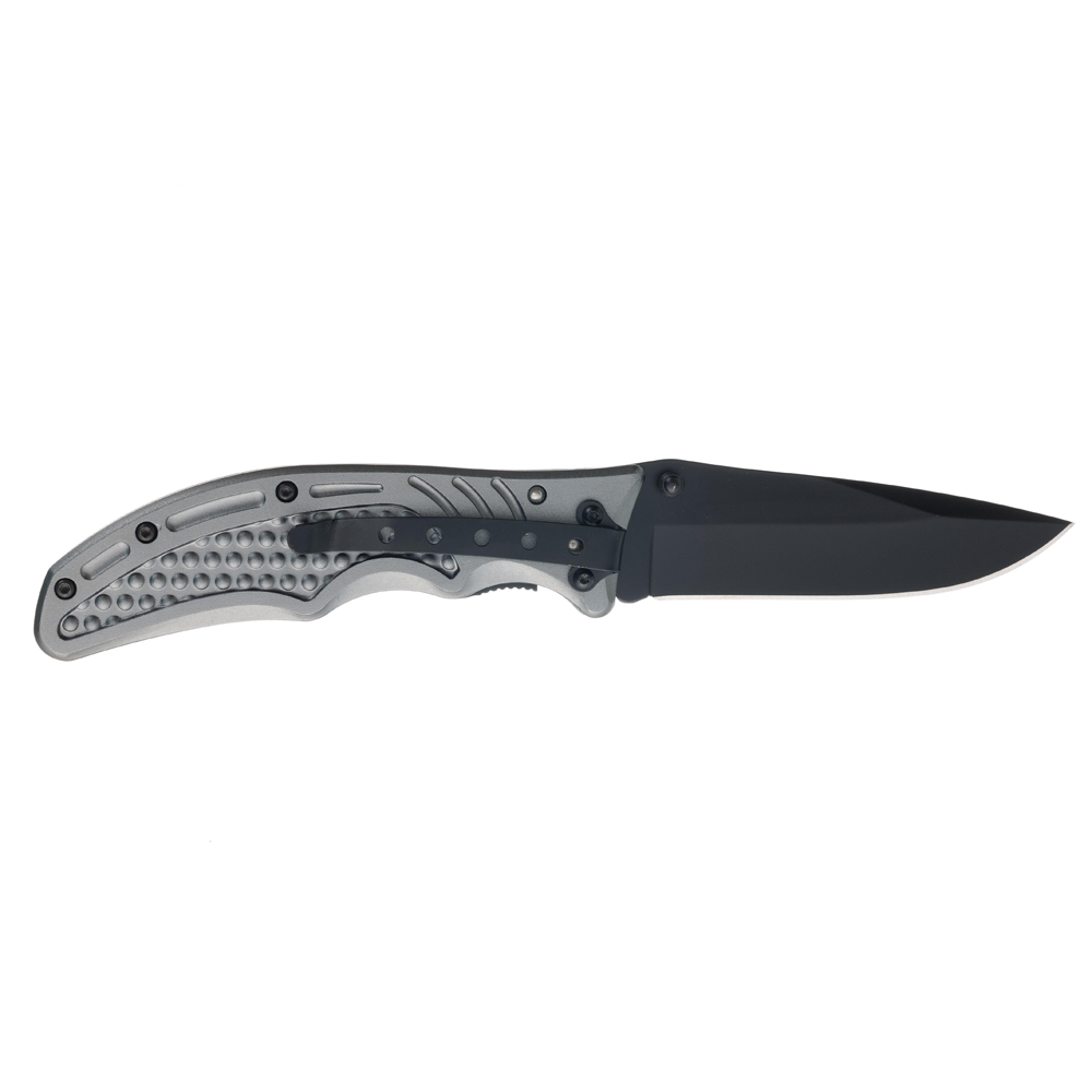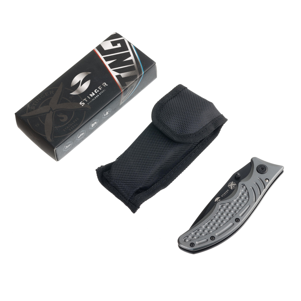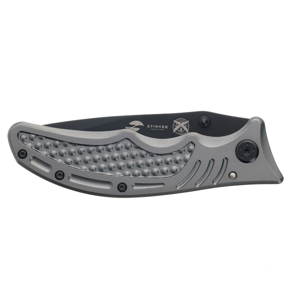 Нож складной Stinger, 90 мм, (чёрный), материал рукояти: сталь/алюминий (серо-синий), YD-7918EY