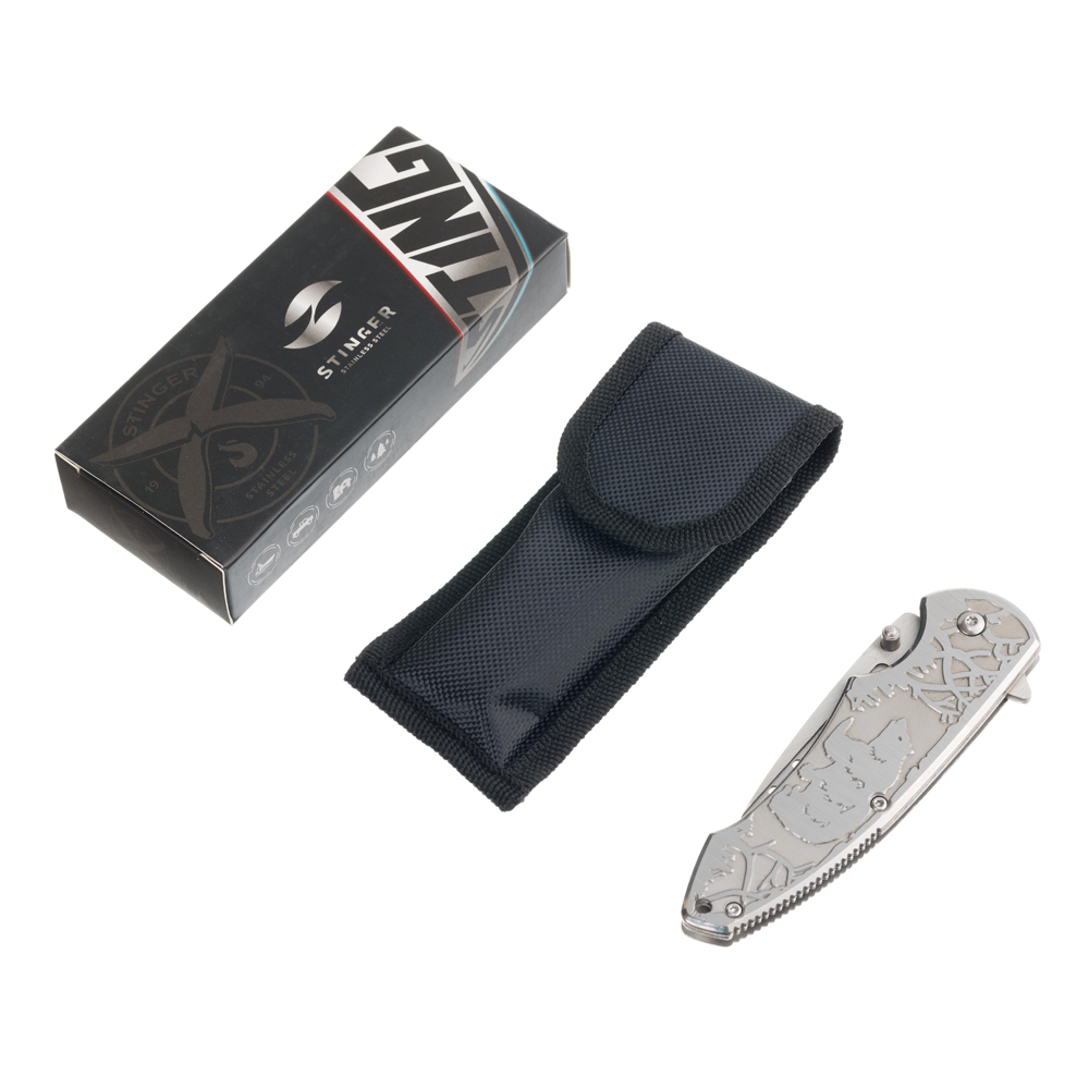 Нож складной Stinger, 85 мм, (серый), материал рукояти: сталь/алюминий (серый), в картонной коробке, SA-438