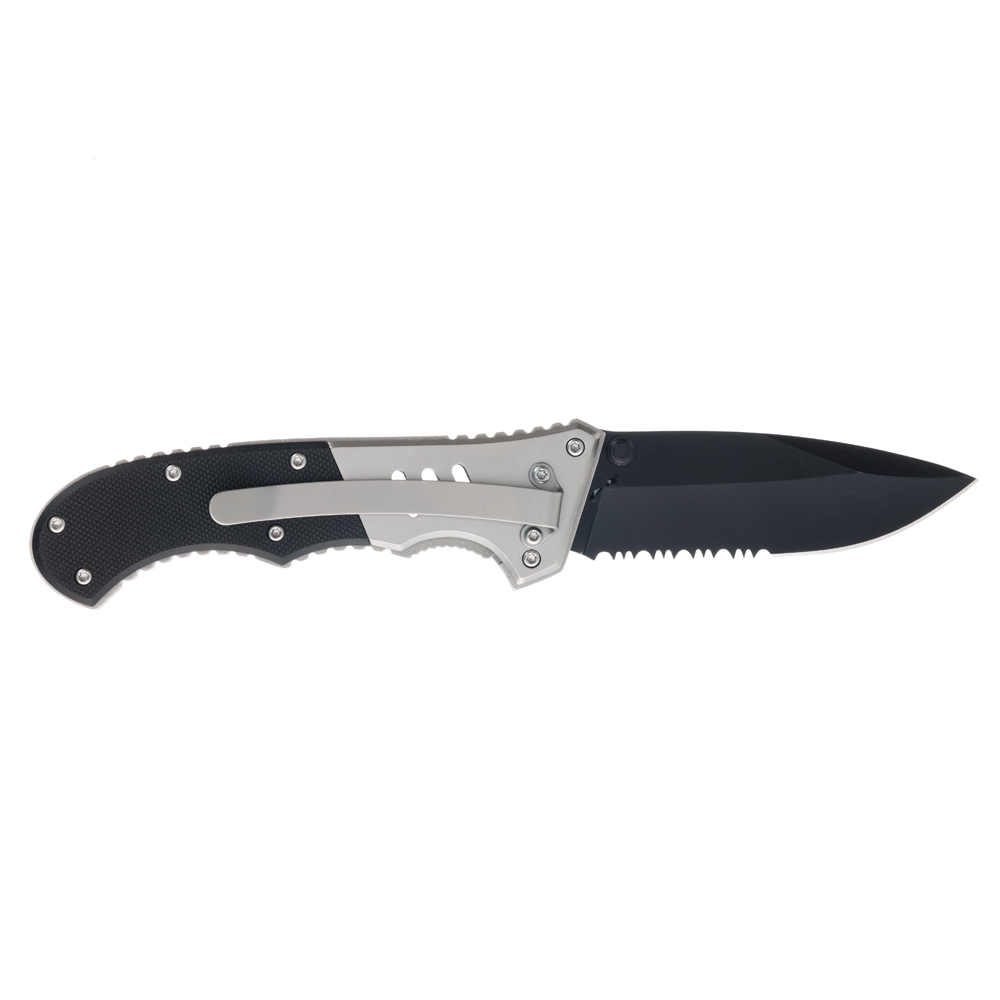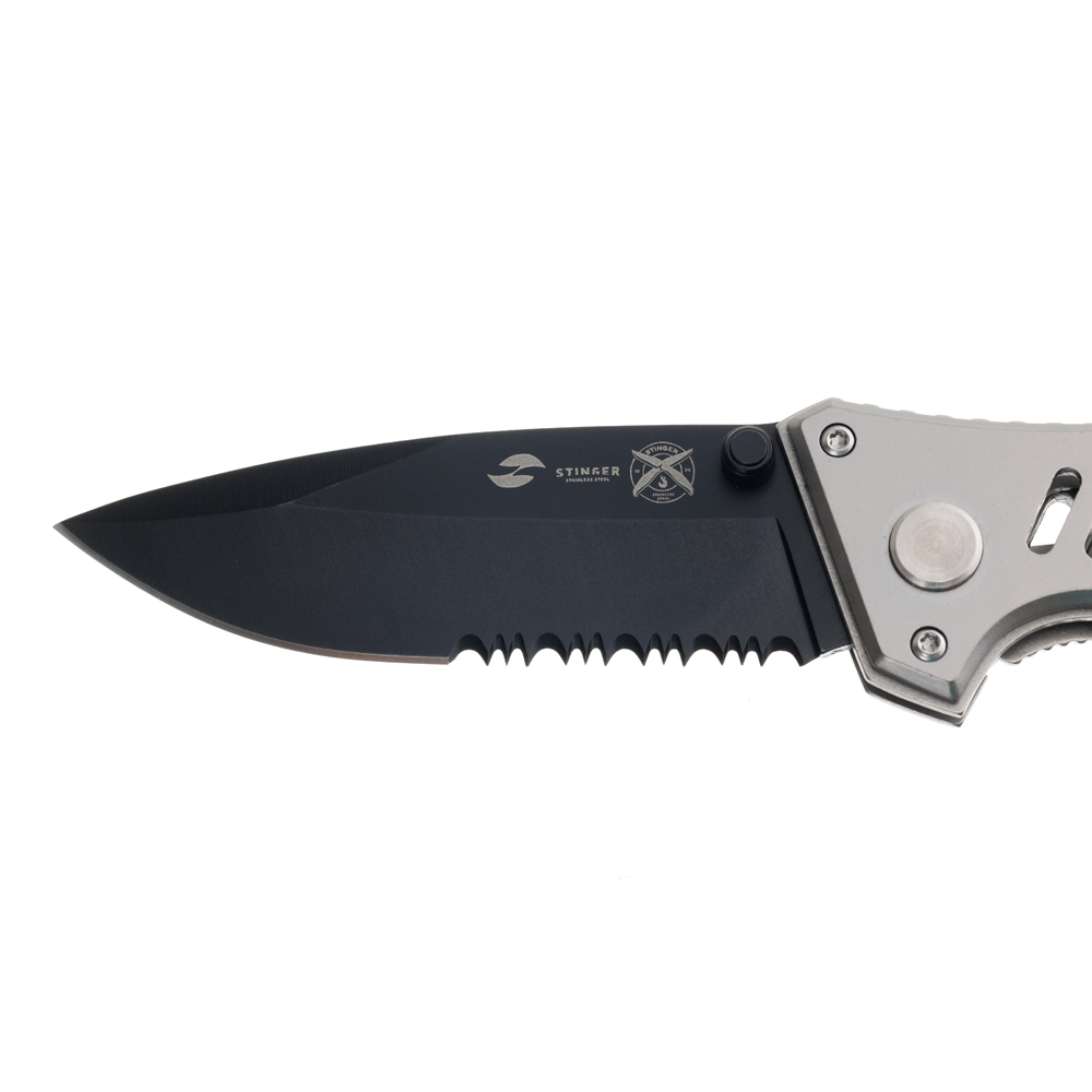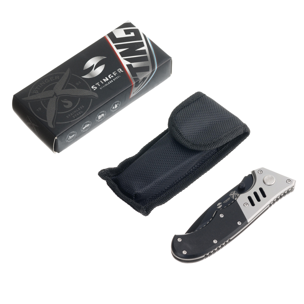 Нож складной Stinger, 80 мм, (чёрный), материал рукояти: сталь/пластик (серебристо-чёрный), FK-H152GG
