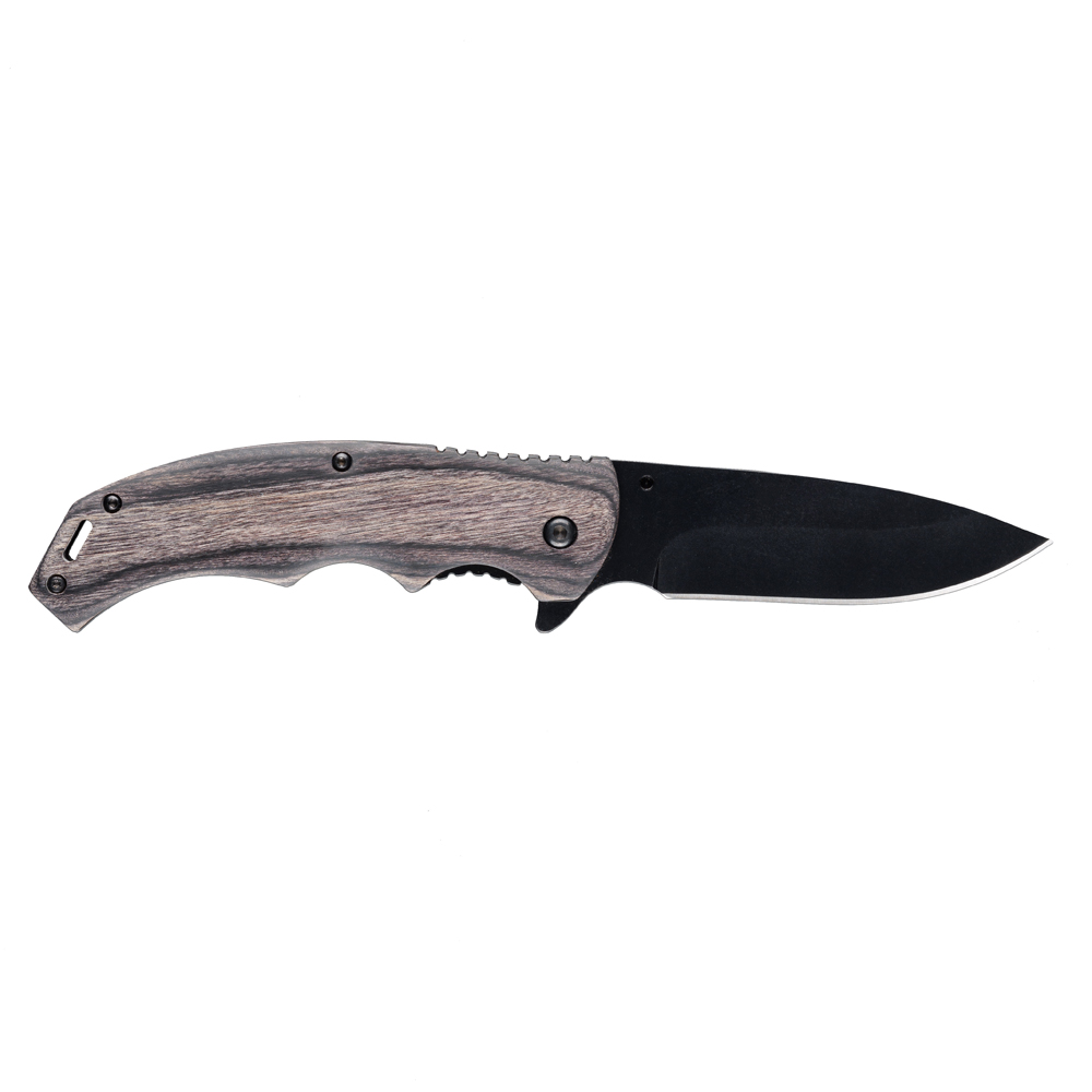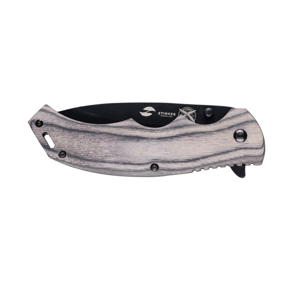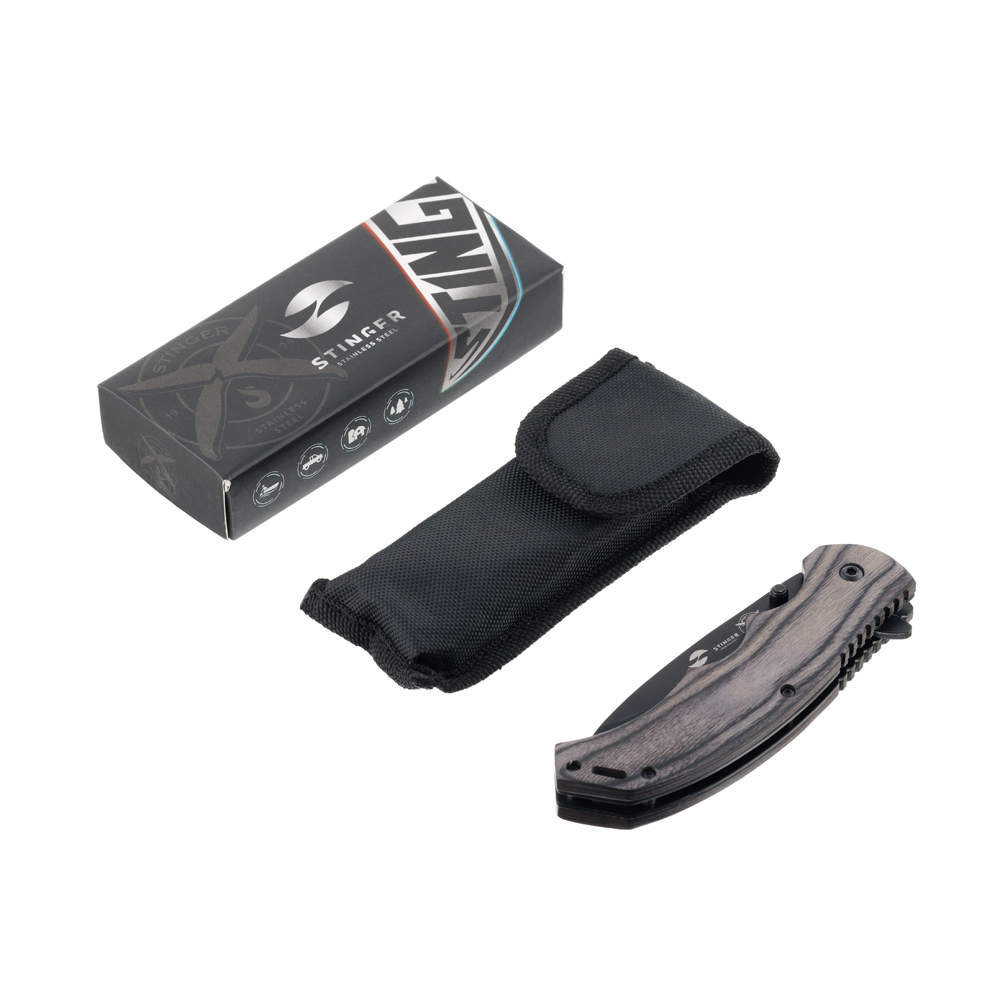 Нож складной Stinger, 120 мм, (чёрный), материал рукояти: дерево/сталь (серый), в картонной коробке, FK-1116BK