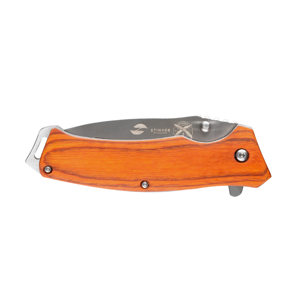 Нож складной Stinger, 110 мм, (серебристый), материал рукояти: дерево/сталь (коричневый), FK-1117RK