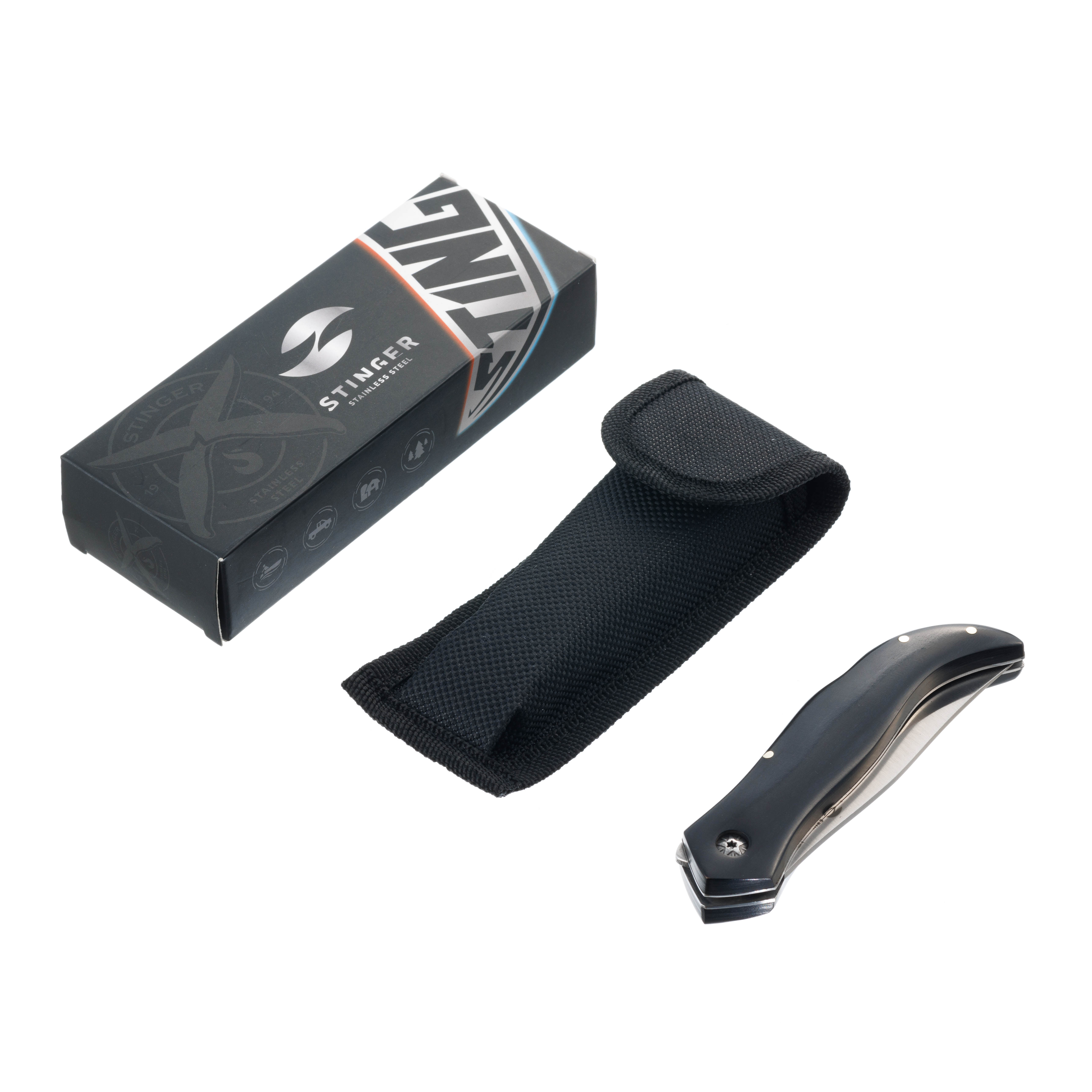 Нож складной Stinger, 101 мм (серебристый), материал рукояти: древесина черного дерева (черный), FB619B