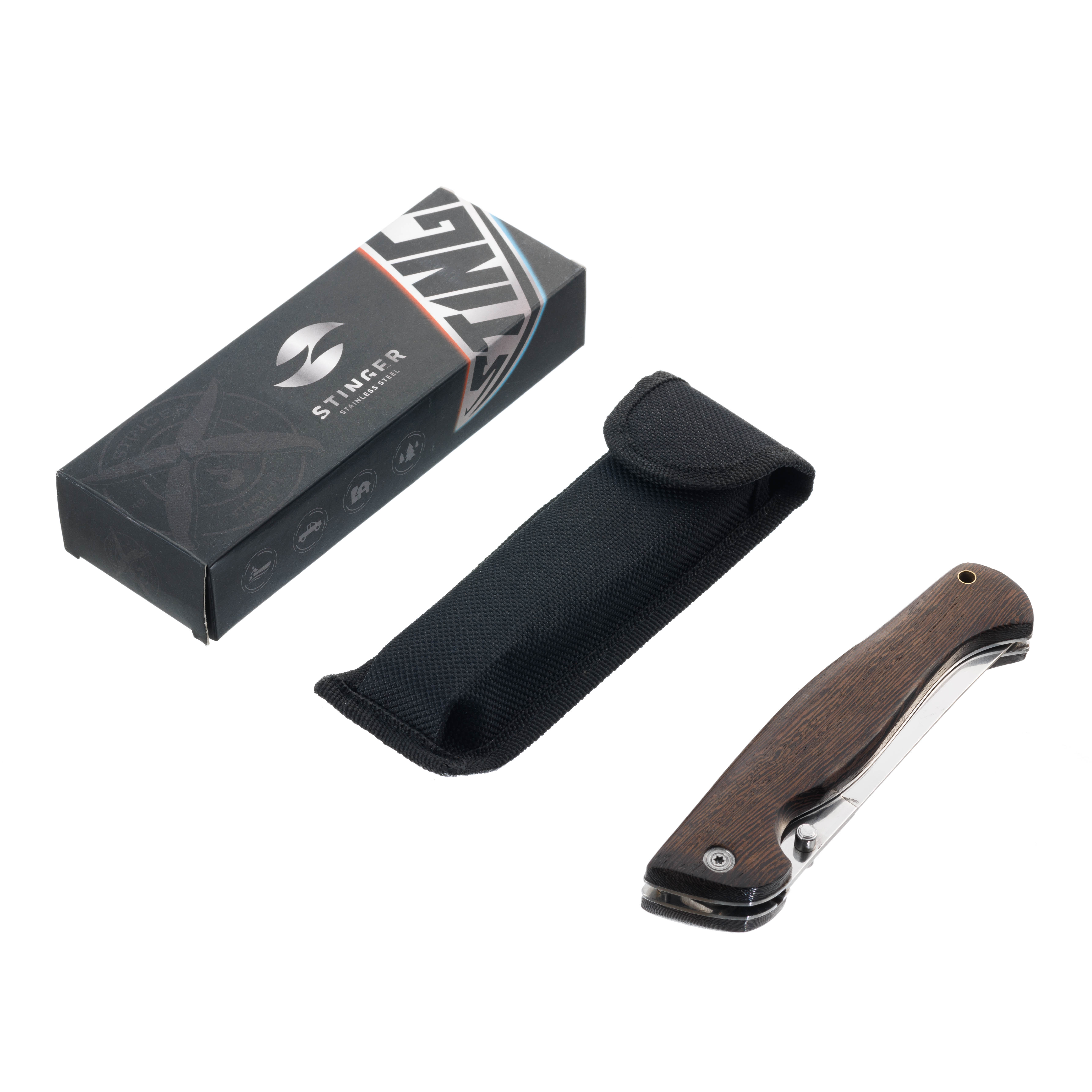 Нож складной Stinger, 112 мм (серебристый), материал рукояти: древесина венге (коричневый), FB628