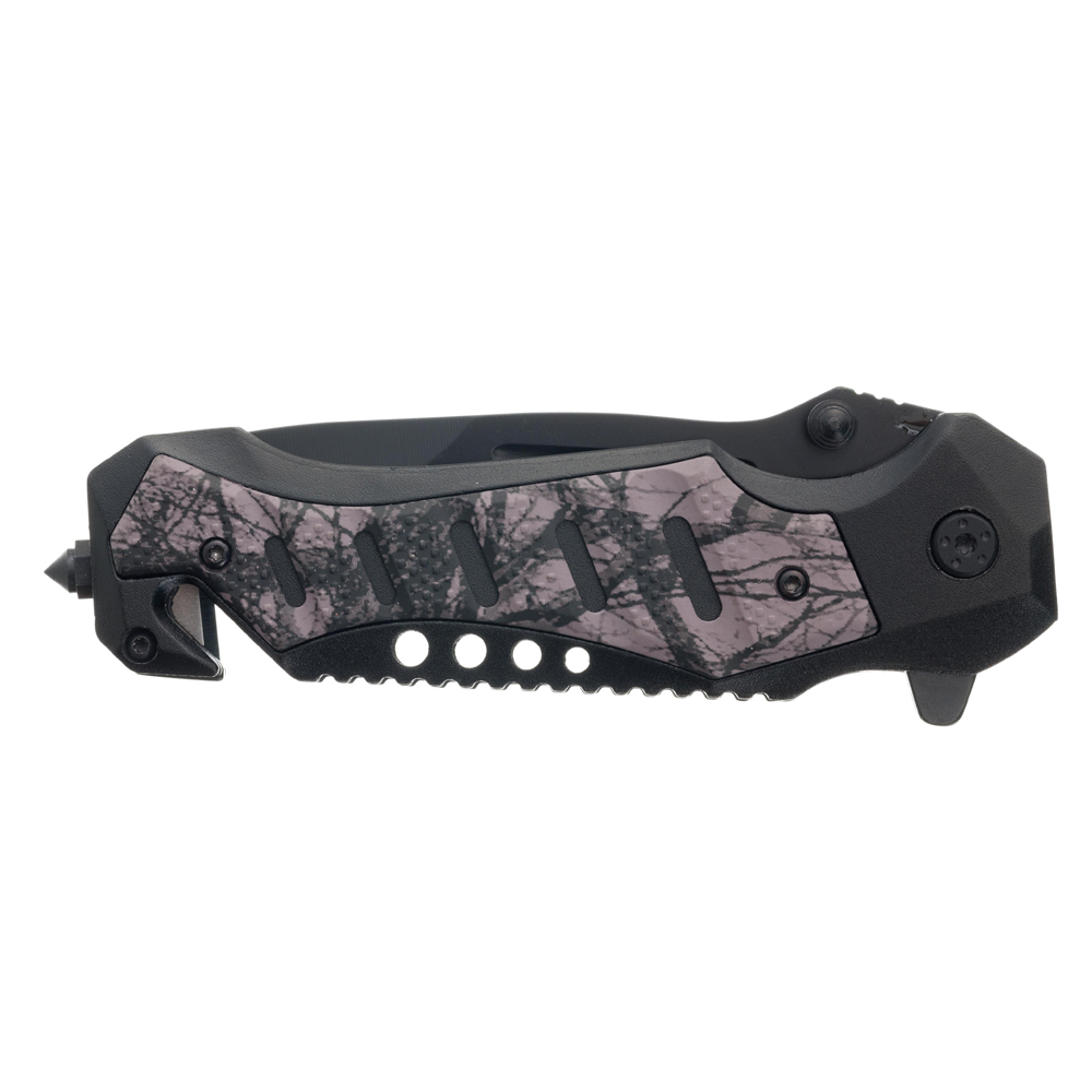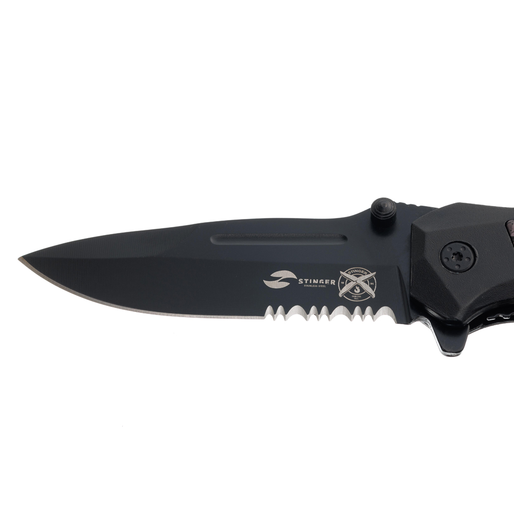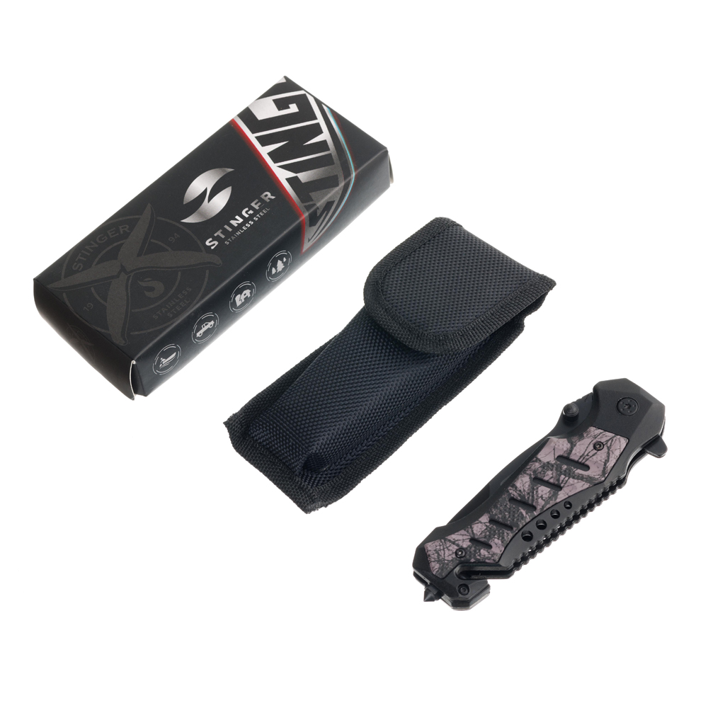 Нож складной Stinger, 90 мм, (чёрный), материал рукояти: сталь/алюминий (серый камуфляж/чёрный), SA-582GY