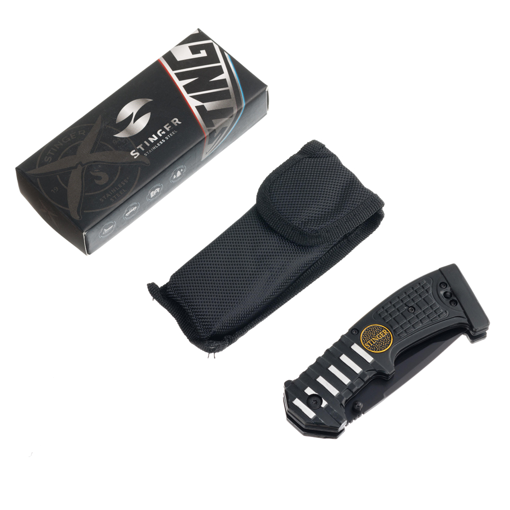 Нож складной Stinger, 90 мм (чёрный), материал рукояти: сталь/алюминий/пластик (чёрный), SA-583B