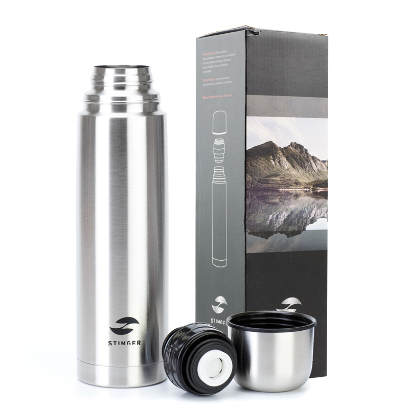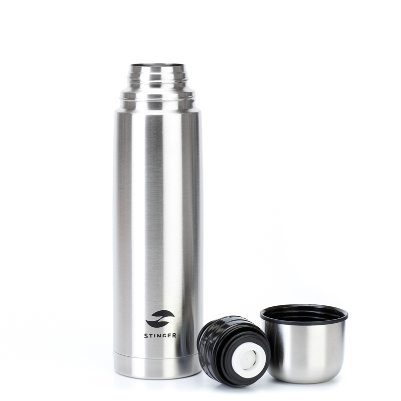 Термос Stinger, 1 л, узкий, нержавеющая сталь, серебристый, 8,6 х 8,6 х 31,4 см, HB-1000
