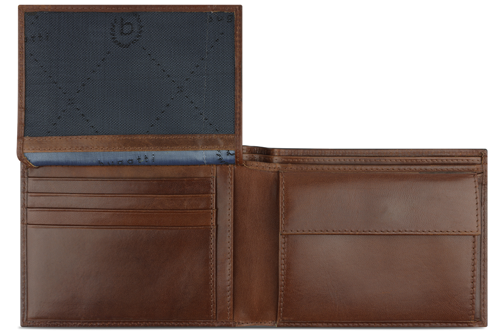 Портмоне BUGATTI АРИСТОКРАТ | NOBILE, с защитой данных RFID, коричневое, воловья кожа/полиэстер, 12х2х9,5 см, 49125407