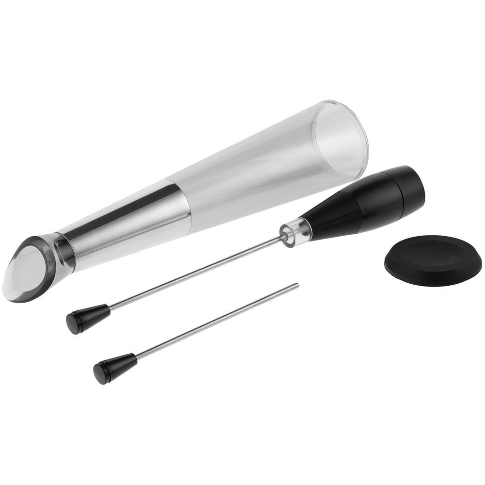диаметр 6,5 см; высота 36,6 см; длина насадки для бутылки 24 см, для бокала - 16 см; упаковка: 7x7x37,5/41 см |