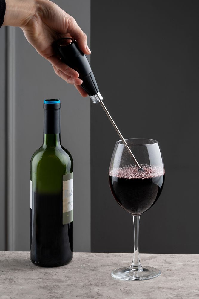 Аэратор Easy Breezy с помощью встроенного насоса создает большое количество пузырьков и благодаря сменным стержням разной длины подходит для аэрации вина в декантере, бокале или в бутылке.В комплекте 2 насадки: длинная — для бутылки, короткая — для бокала.