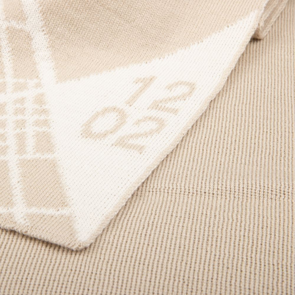 Однотонная середина шарфа тактильно чуть тоньше, чем края шарфа с жаккардовым узором.