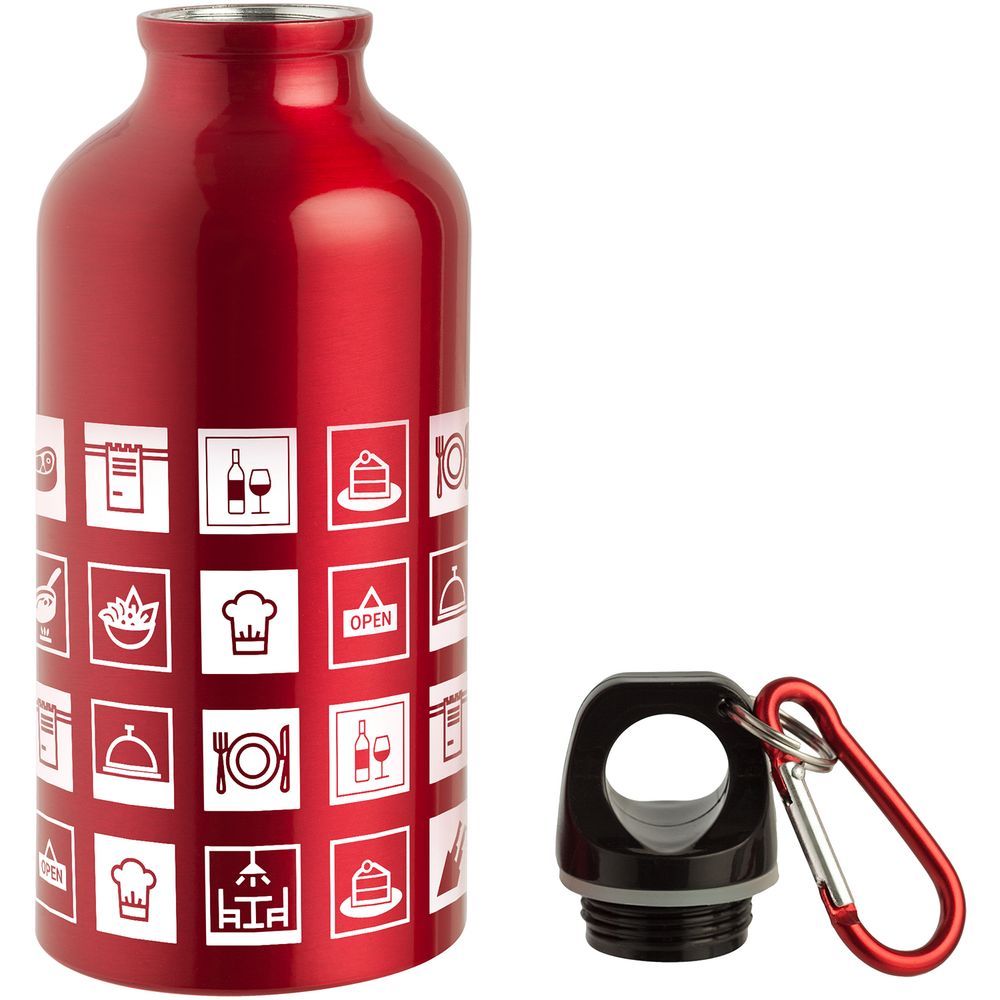 В каждой части общего рисунка изображены главные символы кафе и ресторанов.Легкая и миниатюрная бутылка для воды с плотно завинчивающейся крышкой.