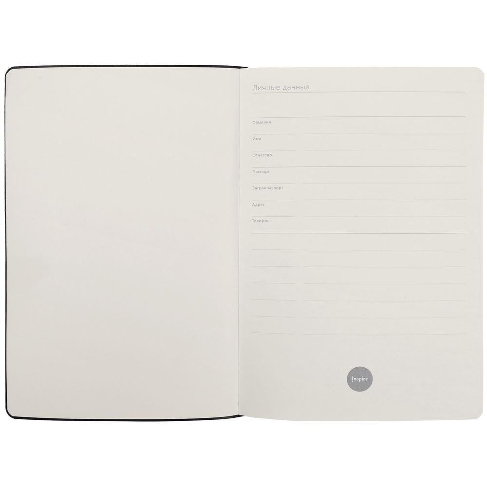 Ежедневник с гибкой обложкой, выполнен из материала Latte, серый, дополнен ляссе в цвет обложки.