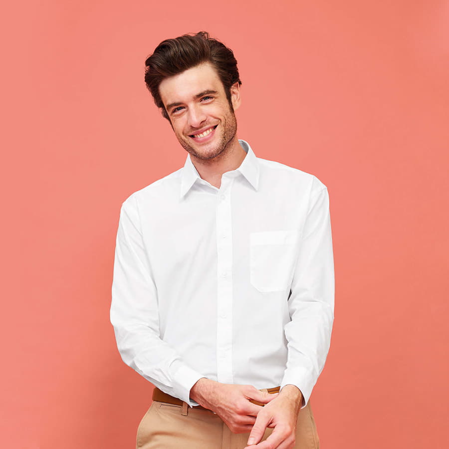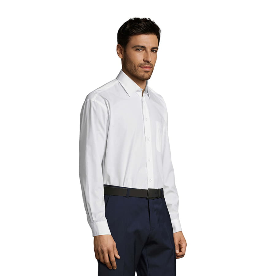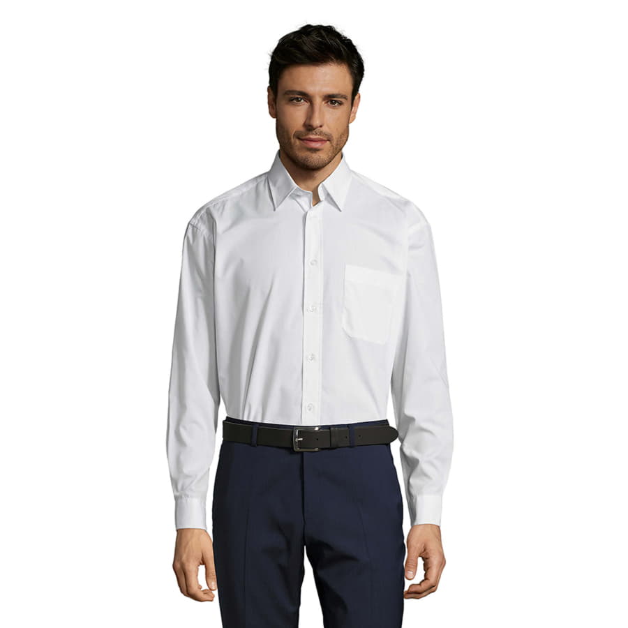 Мужская рубашка из смесового поплина с длинным рукавом.