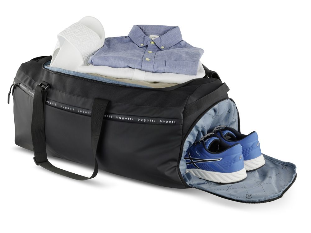 Сумка дорожная BUGATTI БЛАНК ОБЛЕГЧЕННАЯ | BLANC DELIGHT, чёрная, нейлон RPET600D/тарпаулин/полиэстер, 67х32х29 см, 55 л, 49450601