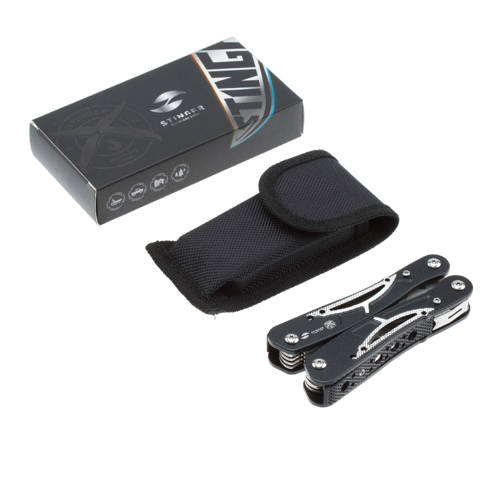 Мультитул Stinger, 104x45 мм, 13 функций, сталь/алюминий, серебристо-чёрный, в нейлоновом чехле, MT-8130AP