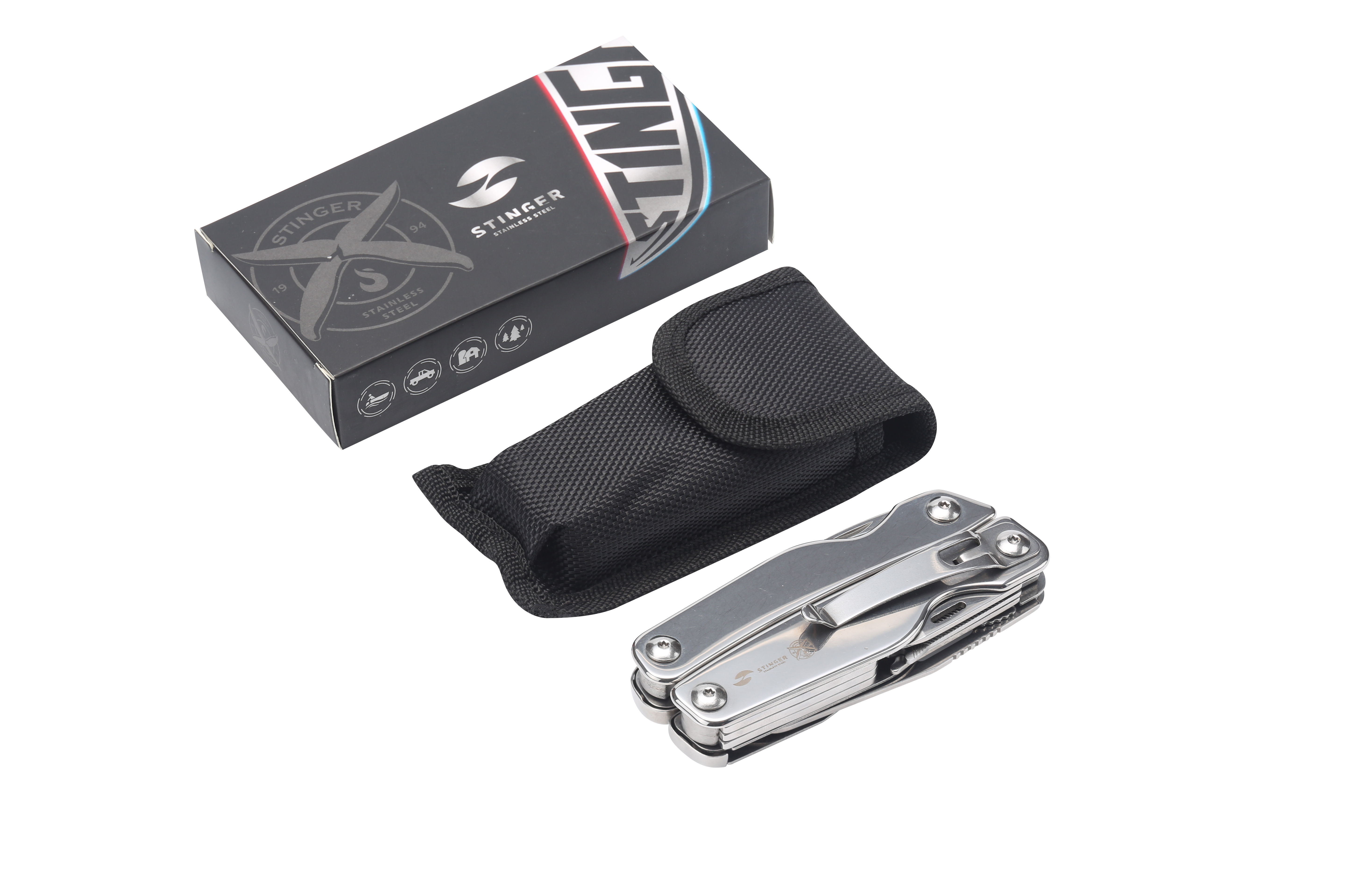 Мультитул Stinger, 101x43 мм, 11 функций, сталь, серебристый, в комплекте нейлоновый чехол, MT-866D-M