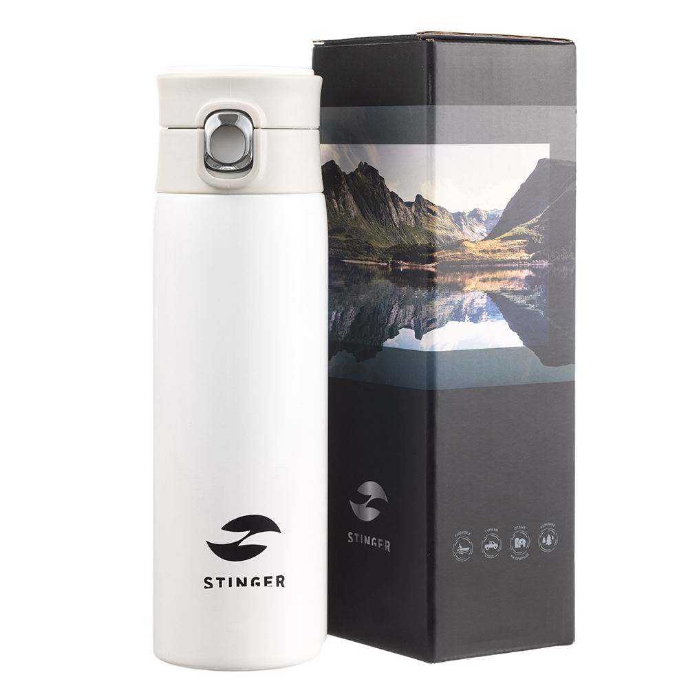 Термокружка Stinger, 0,42 л, сталь/пластик/силикон, белый, 6,5 x 7,5 x 21,9 см, HD-420-83WHT