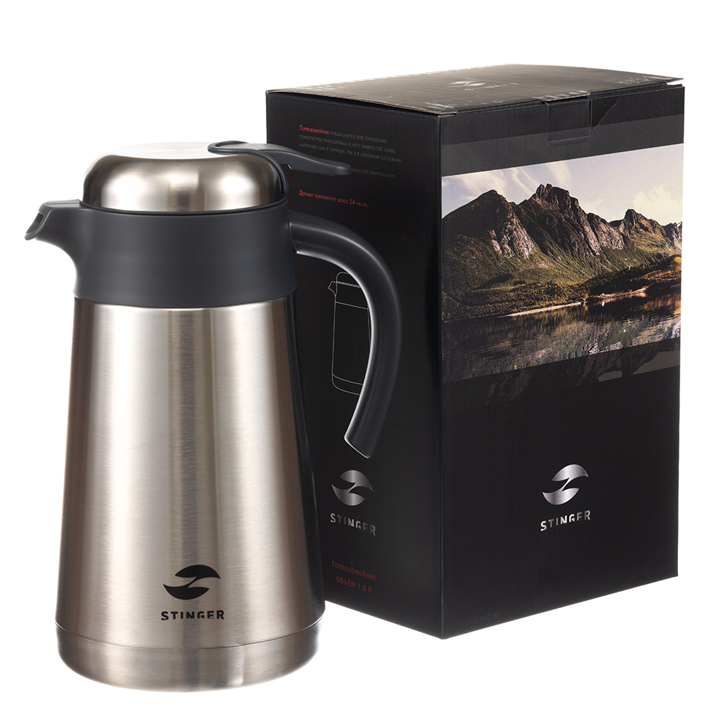 Термокофейник Stinger, 1,6 л, нержавеющая сталь, серебристый, 18 x 13,6 x 25,9 см, HK-1600-9STS