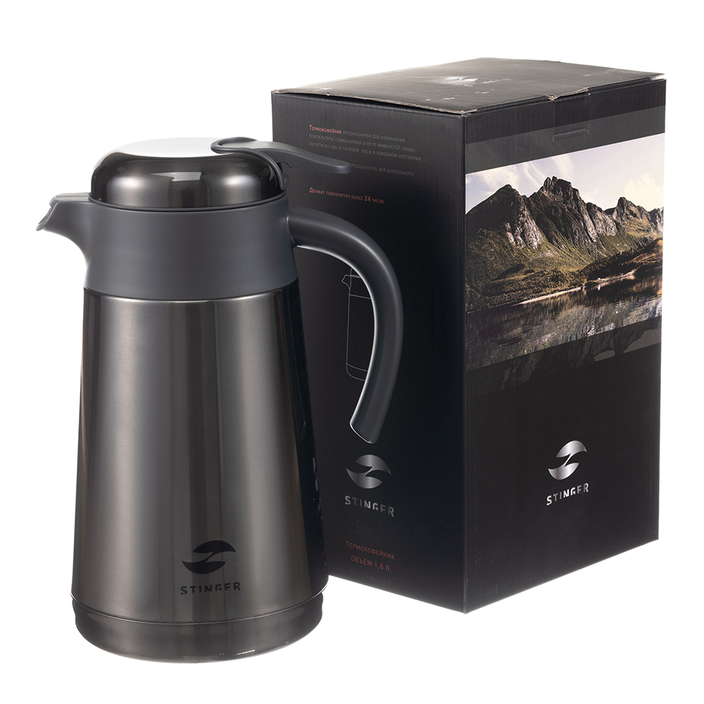 Термокофейник Stinger, 1,6 л, нержавеющая сталь, чёрный, 18 x 13,6 x 25,9 см, HK-1600-9BLK