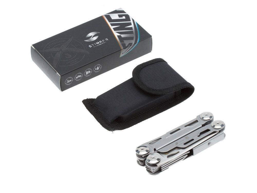 Мультитул Stinger, 105x45 мм, 12 функций, сталь, серебристый, в комплекте нейлоновый чехол, 441105