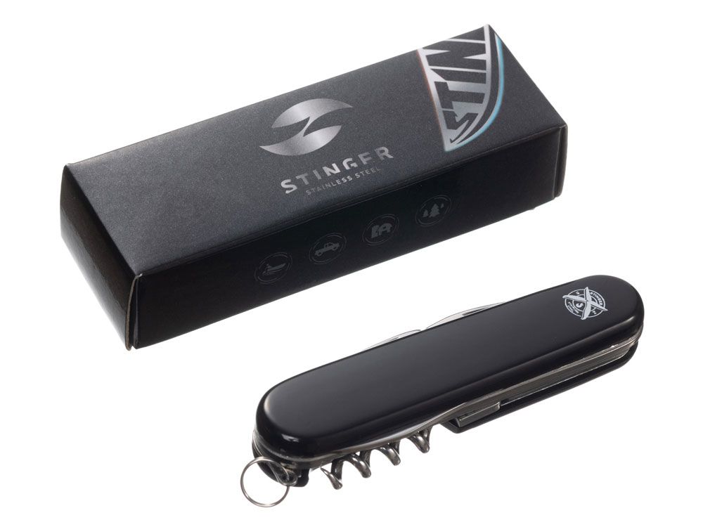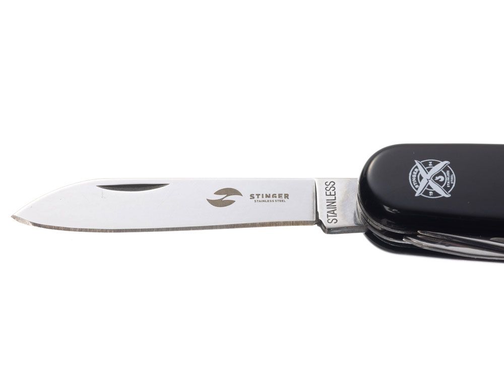 Нож перочинный Stinger, 90 мм, 11 функций, материал рукояти: АБС-пластик (чёрный), 441139