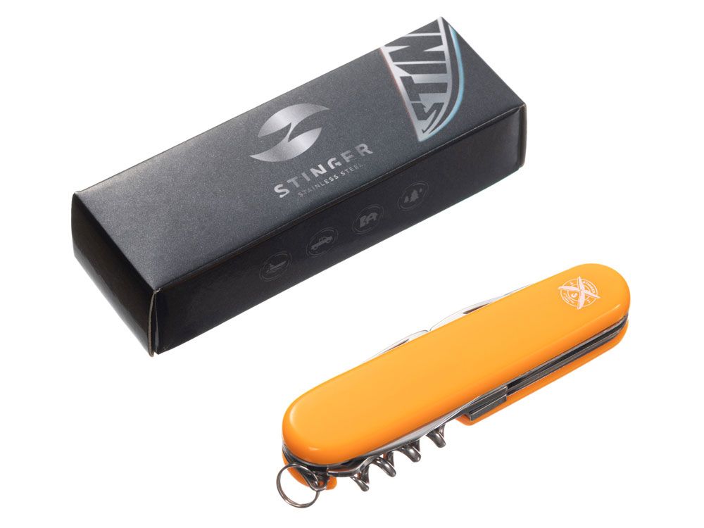Нож перочинный Stinger, 90 мм, 13 функций, материал рукояти: АБС-пластик (оранжевый), 441137