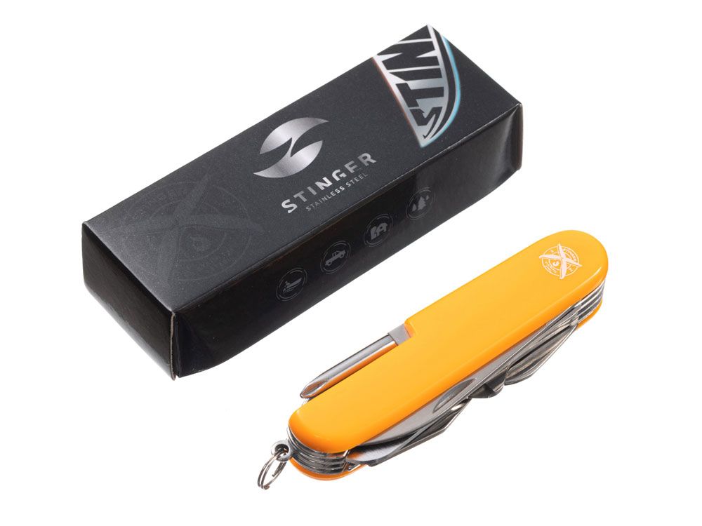 Нож перочинный Stinger, 89 мм, 15 функций, материал рукояти: АБС-пластик (оранжевый), 441147