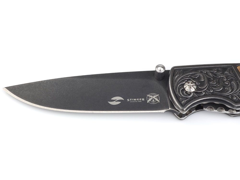 Нож складной Stinger, 71 мм, (чёрный), материал рукояти: сталь/дерево (коричневый), 441152