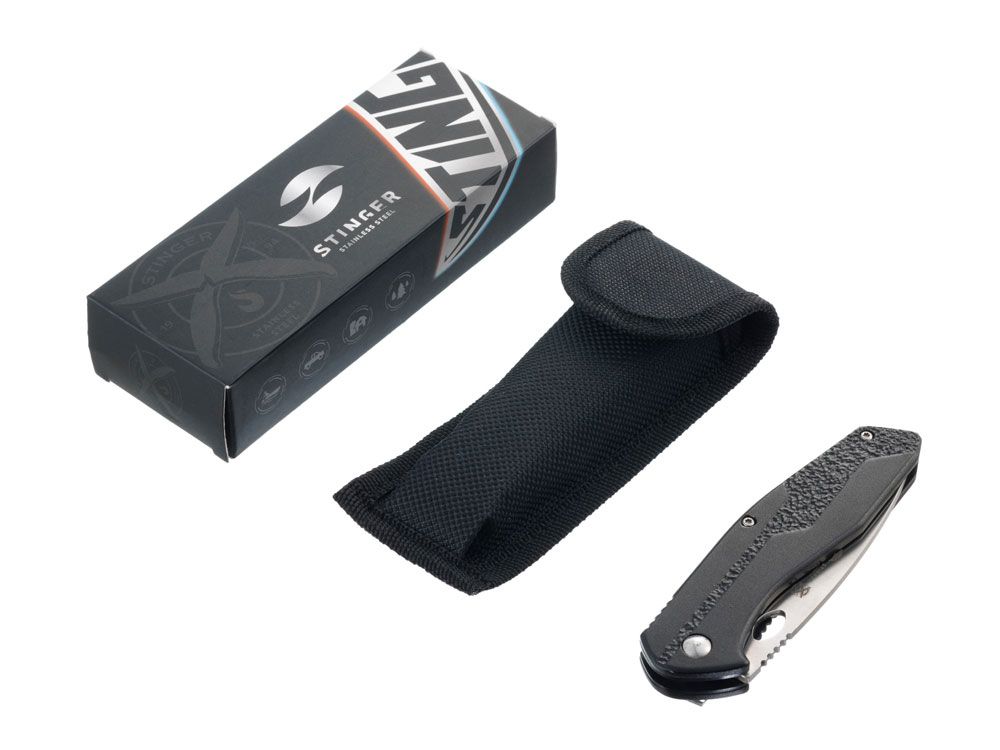 Нож складной Stinger, 95 мм (серебристый), материал рукояти: алюминий (чёрный), 441155, Черный