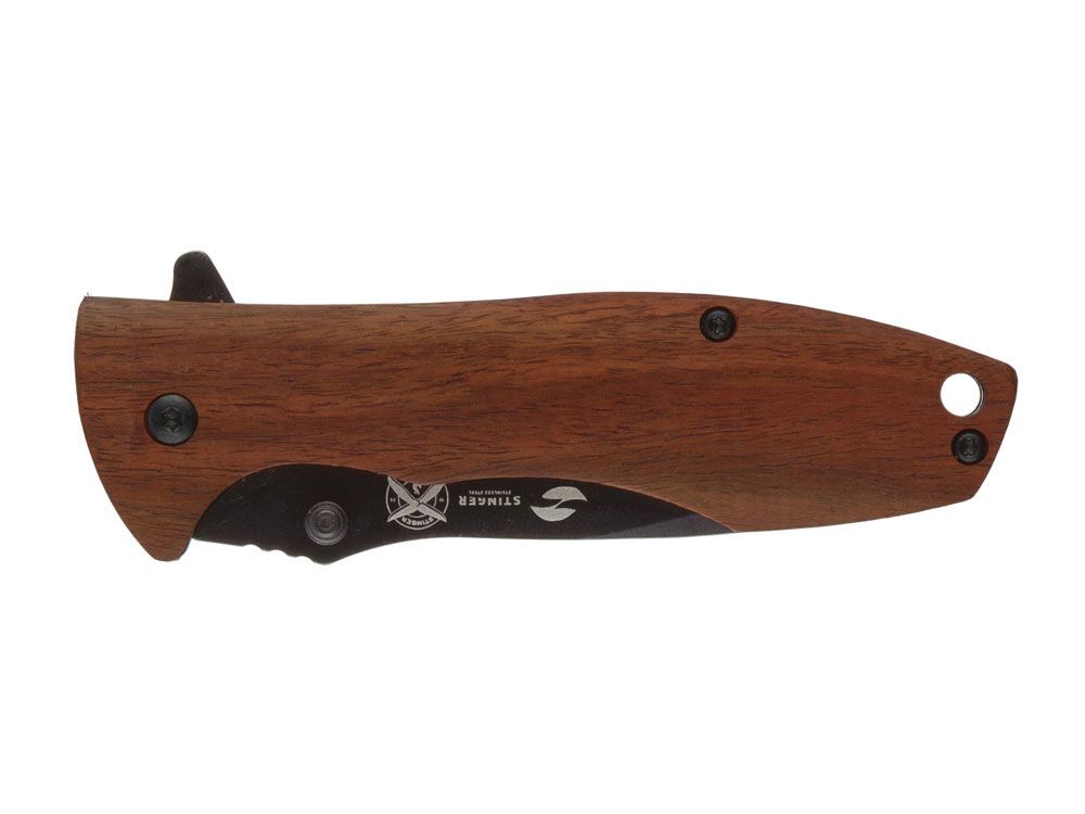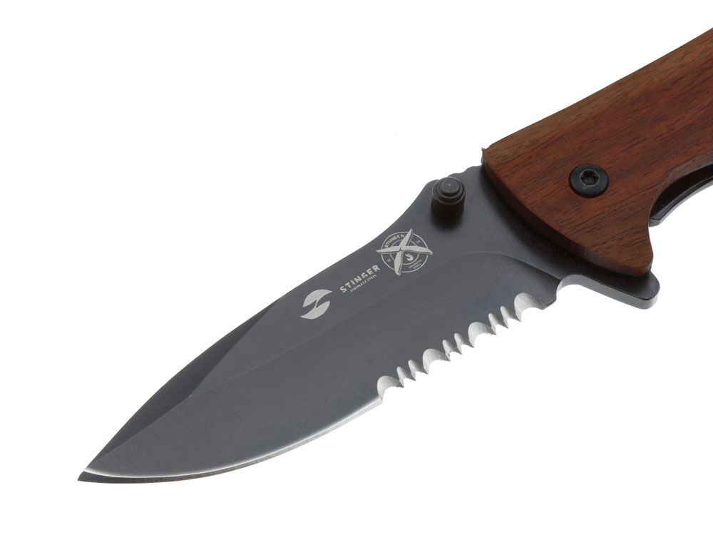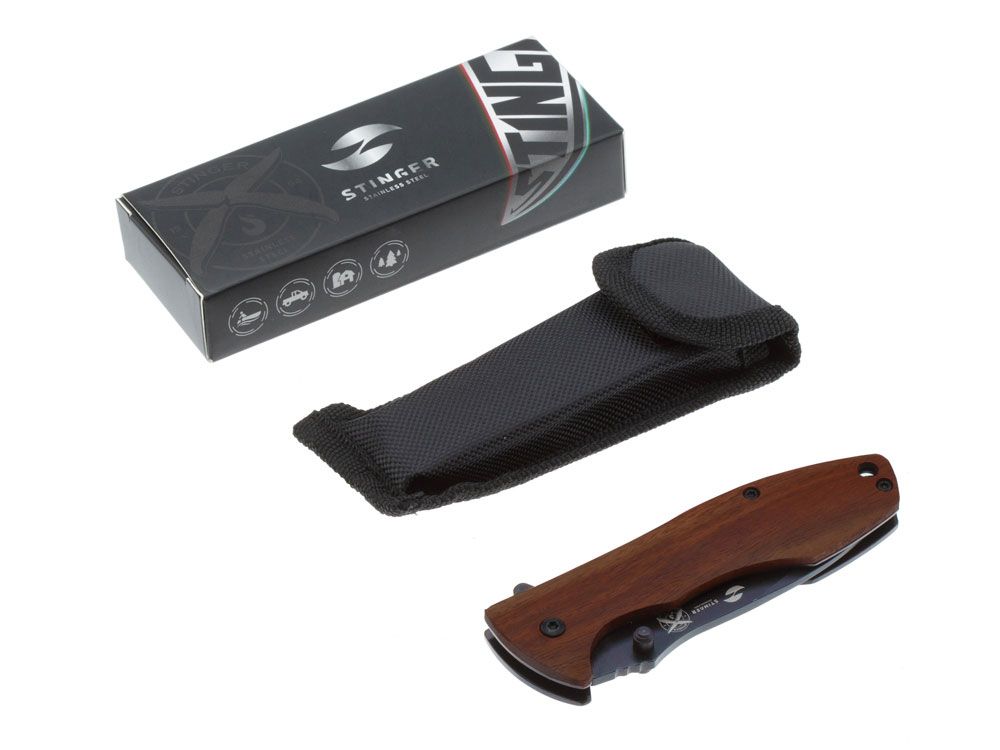 Нож складной Stinger, 80 мм (чёрный), материал рукояти: сталь/сандаловое дерево (коричневый), 441161