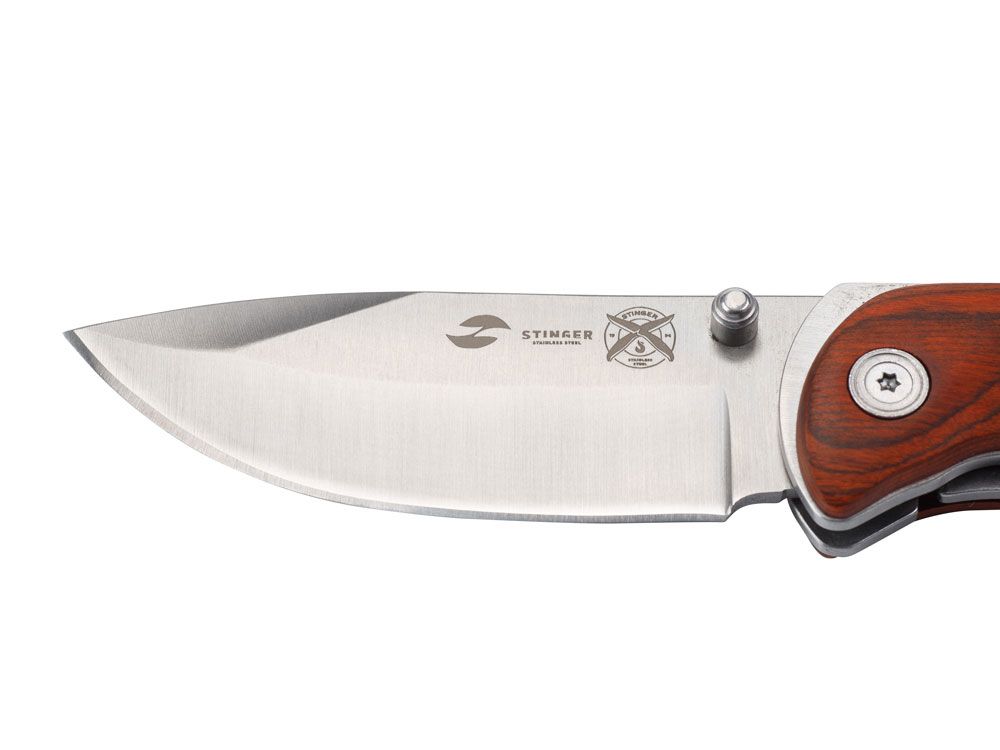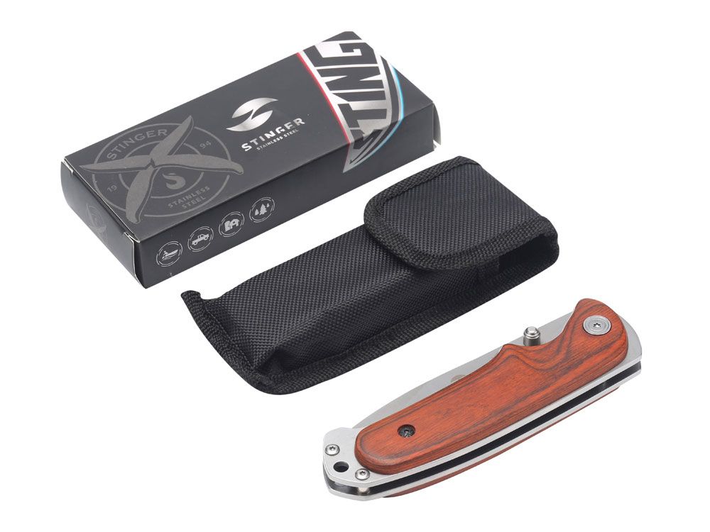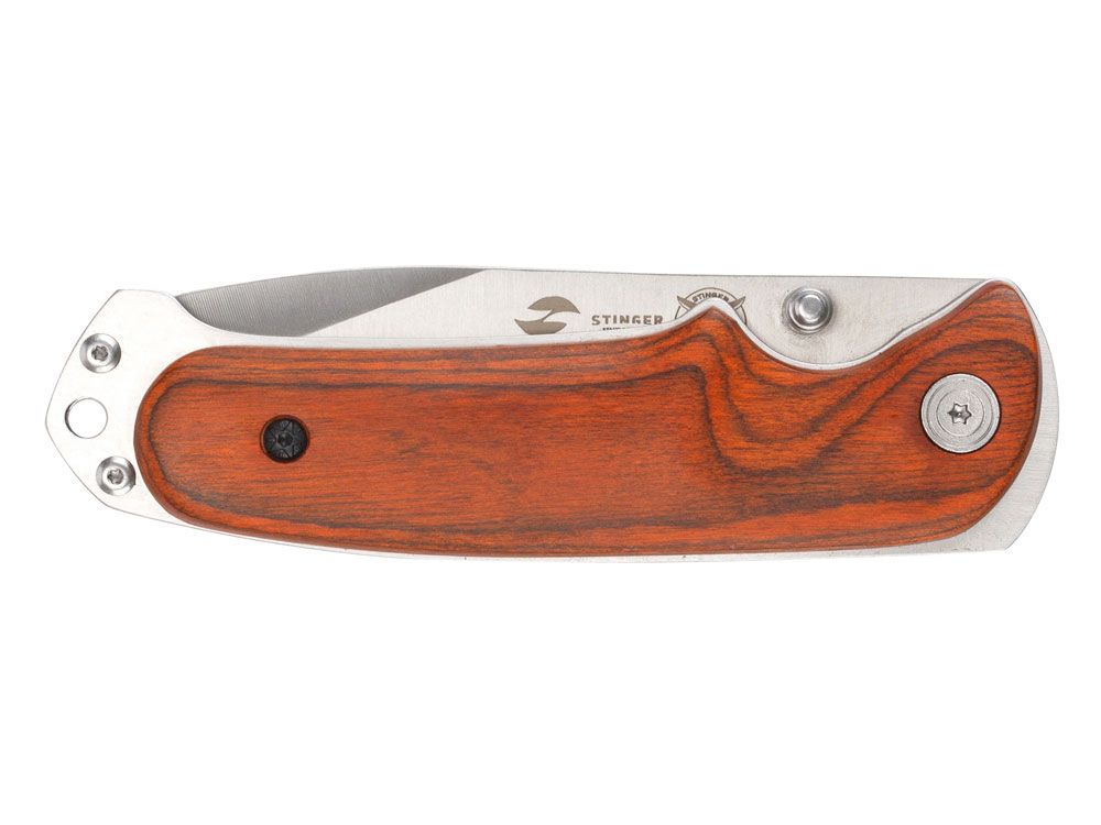 Нож складной Stinger, 91 мм, (серебристый), материал рукояти: сталь/дерево (серебристо-коричневый), 441163