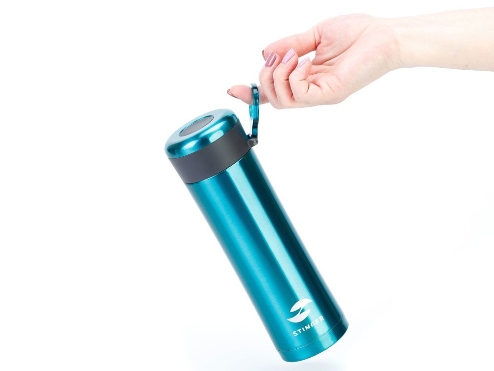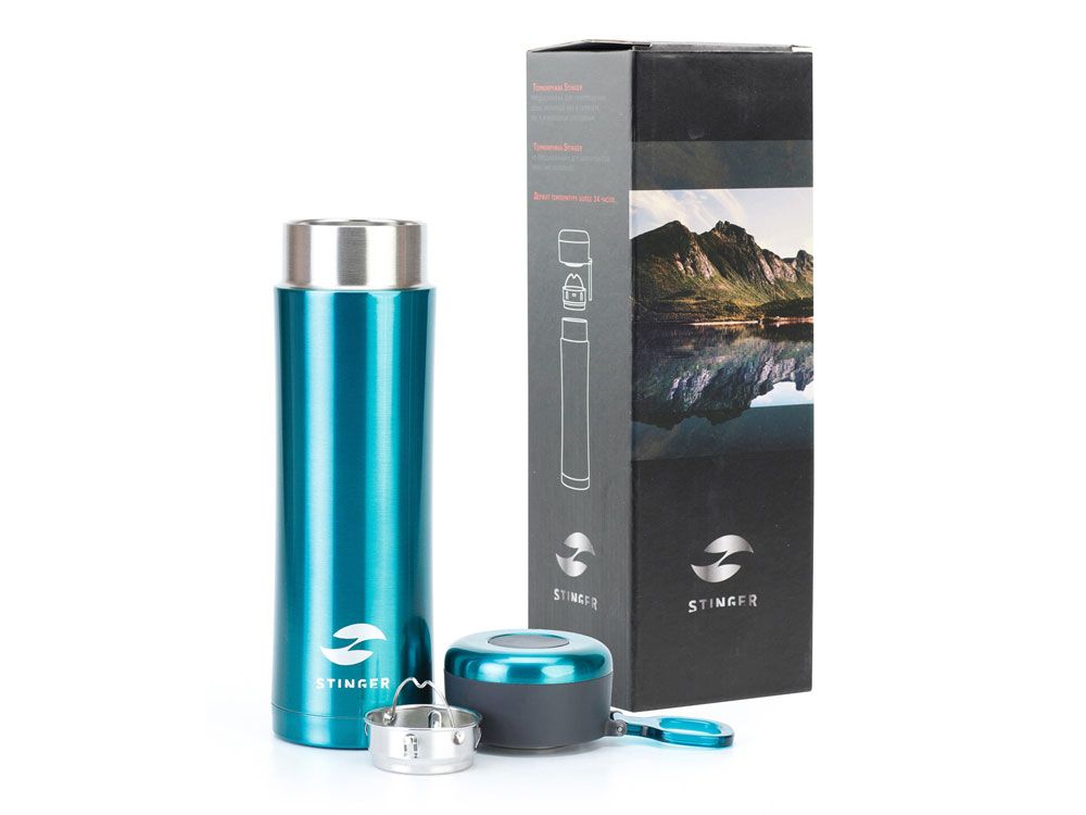 Термокружка Stinger, 0,42 л, сталь/пластик, изумрудный глянцевый, 7,5 х 6,9 х 22,2 см, 441186